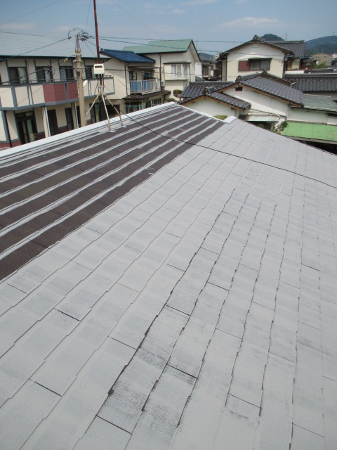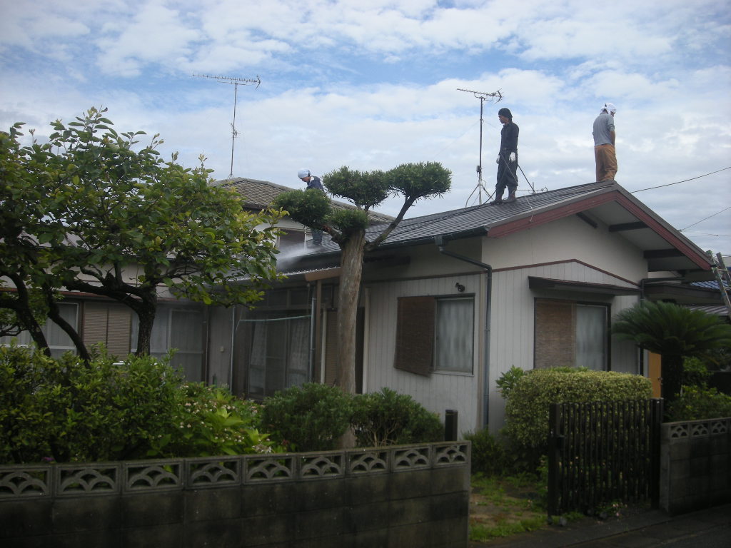 8月の初めに、綾羅木の方からの依頼で、屋根に遮熱塗料を塗装する工事を行いました。