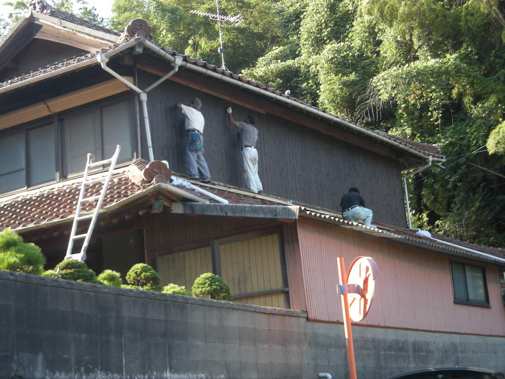 既存の外壁材(焼き杉)を解体、撤去します!!