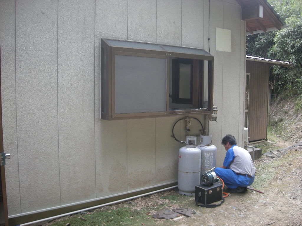 ガス屋さんもガスコンロの組付けや、それに伴うガスの配管工事をし、最後に機器を使って