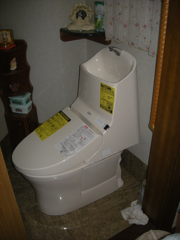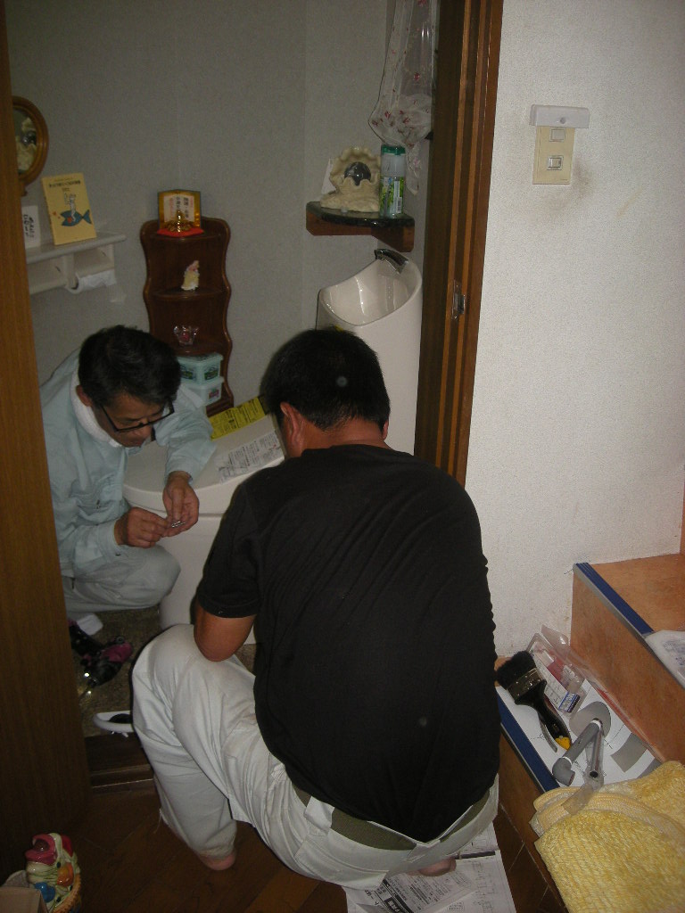*施主さんの希望は古くなった便器の交換とトイレの中に手洗い器がほしいと言うことと、