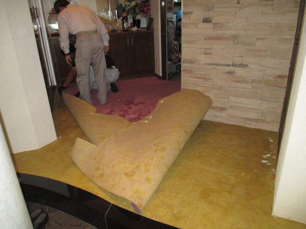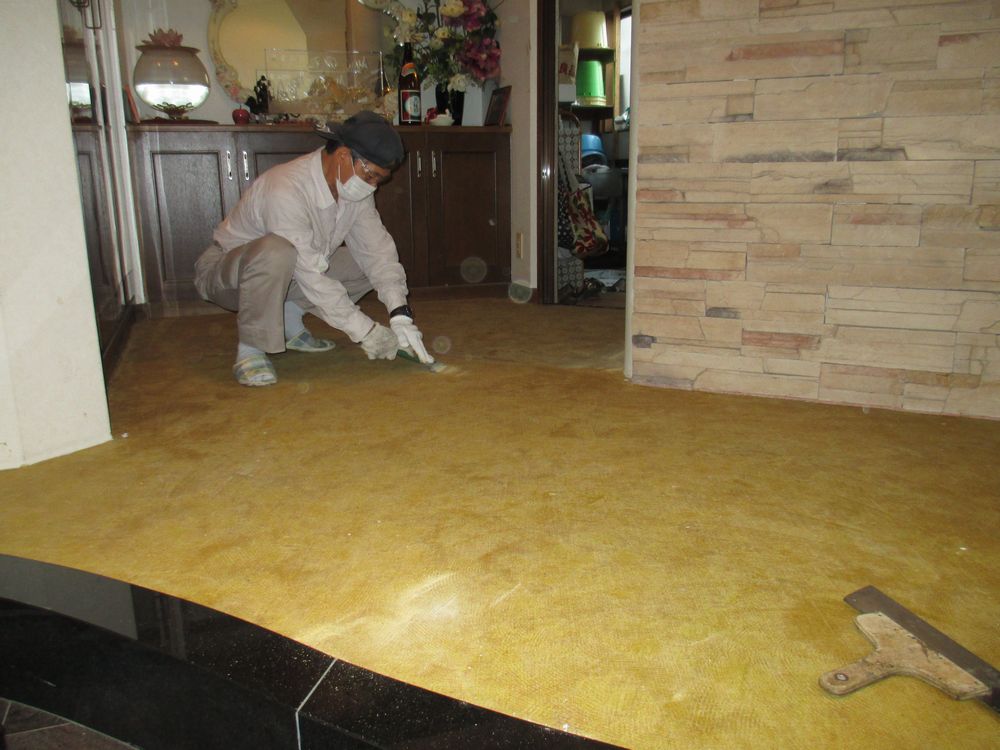 ジュウタンを撤去後、不陸(凸凹)を調整します!!