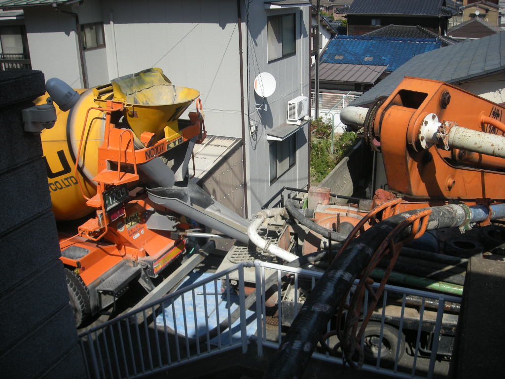 いよいよ作業の開始です”・生コン車から生コンをポンプ車に移します!!