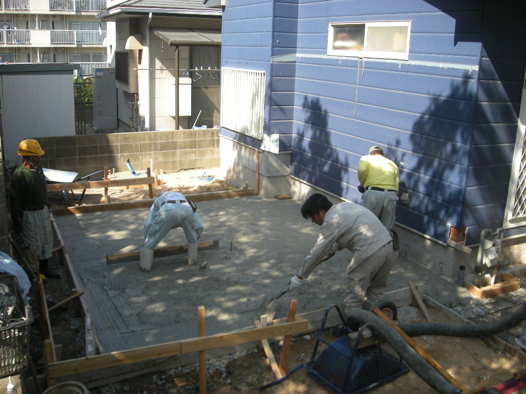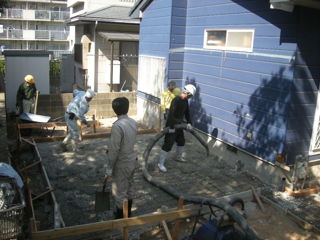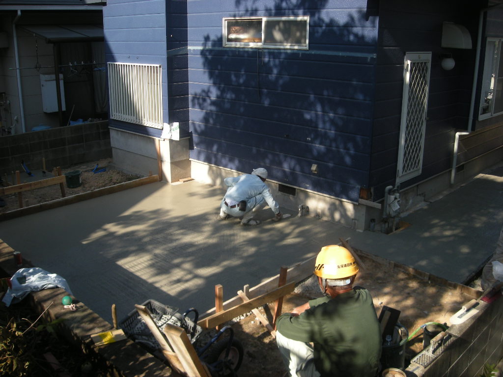 つづいてウッドデッキの土間部分にも生コンを打設して行きます!!