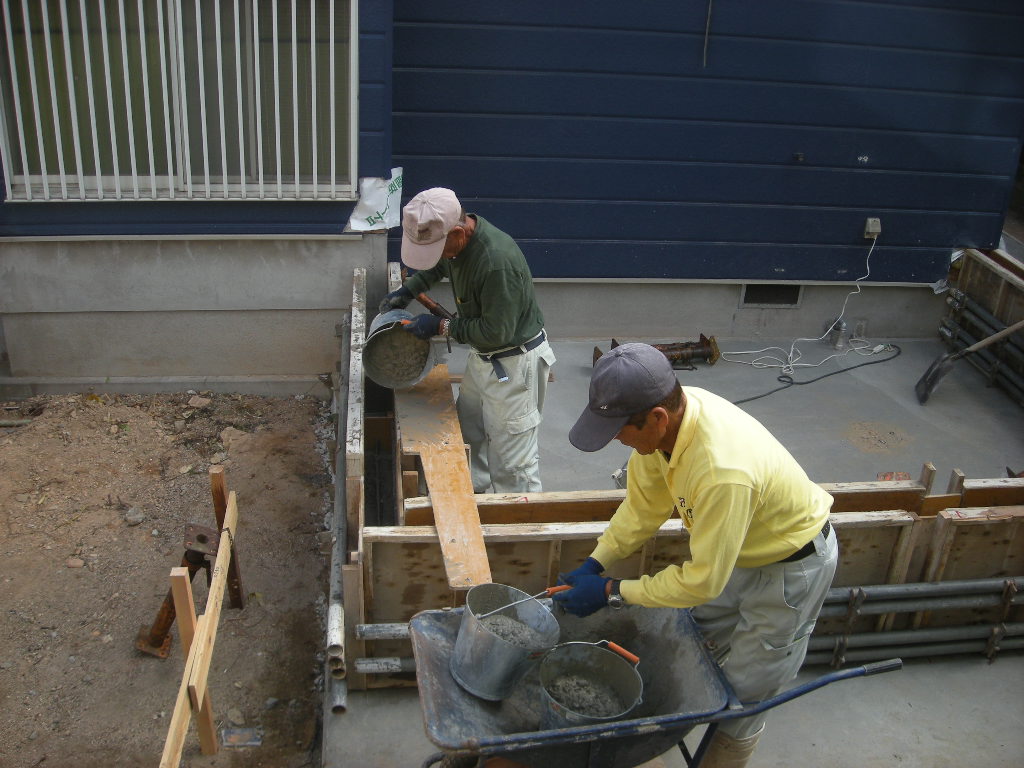 この様にして立上り基礎への生コンの打設作業が完了しました。