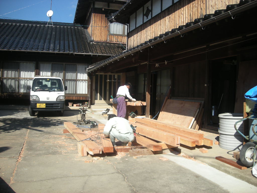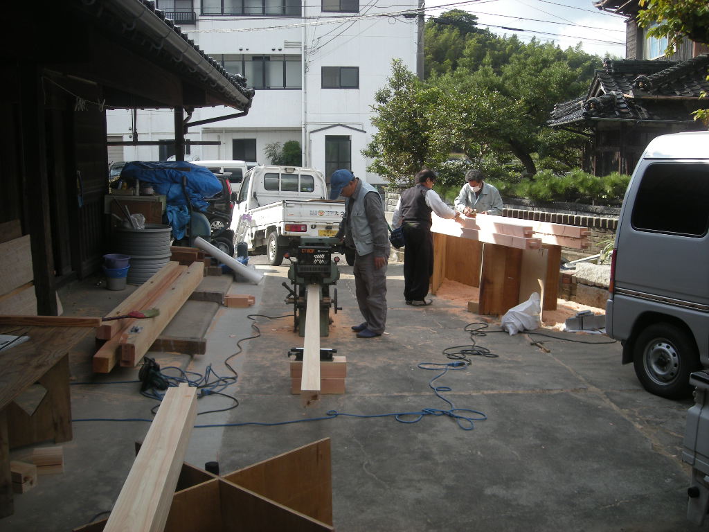 *現場での作業に入る前に会社の作業場で、使用する材料の墨出しやきざみ・加工を行いました。