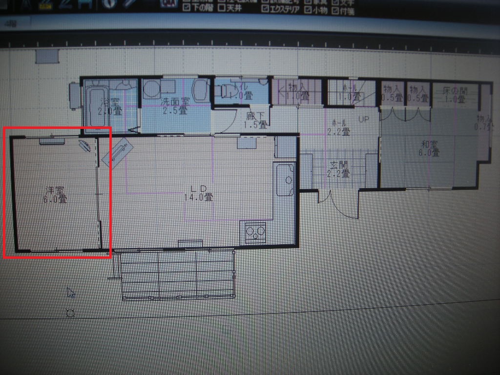 赤線で囲った部分を既存の建物と繋いで増築します!!