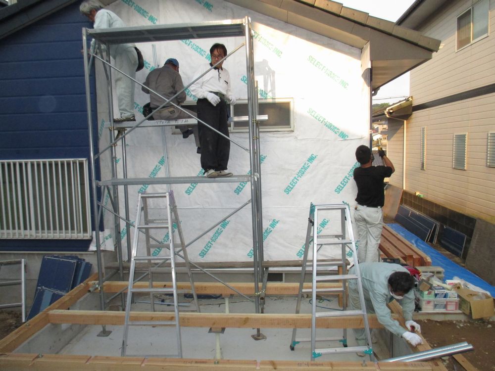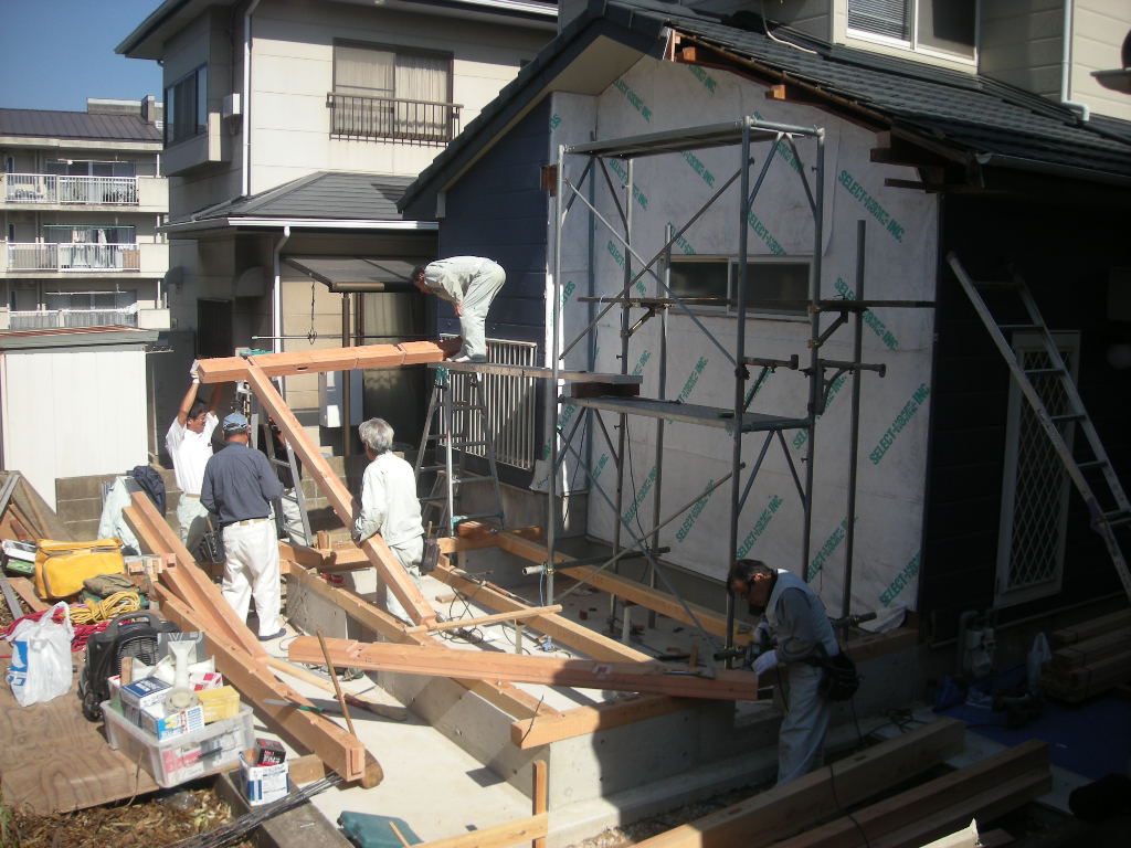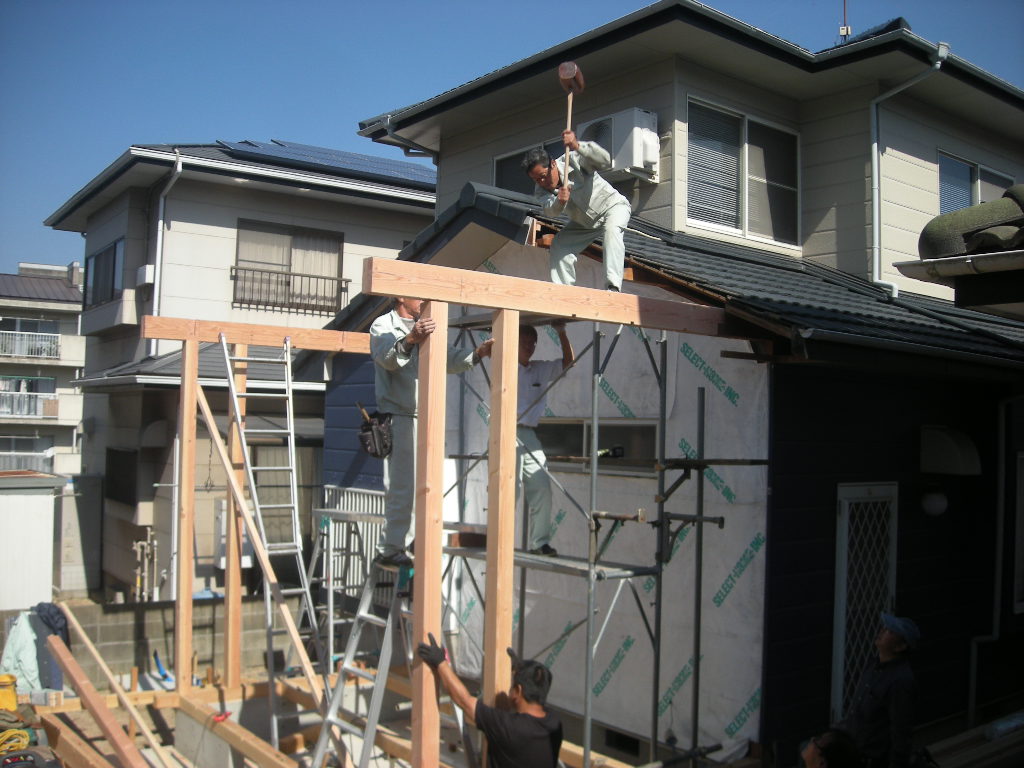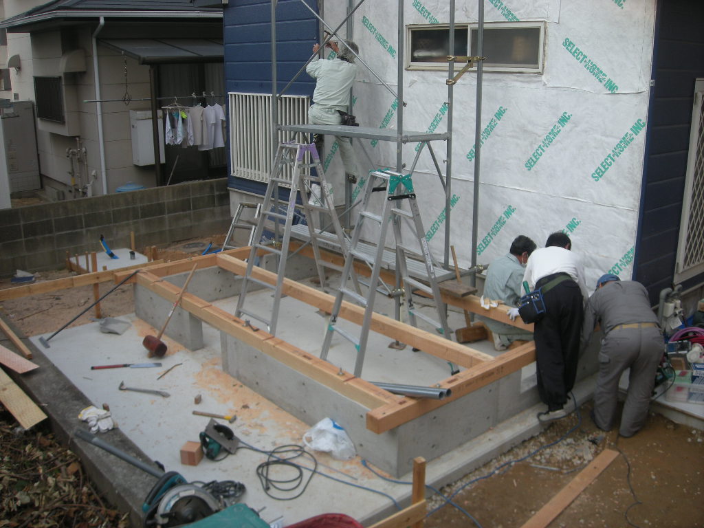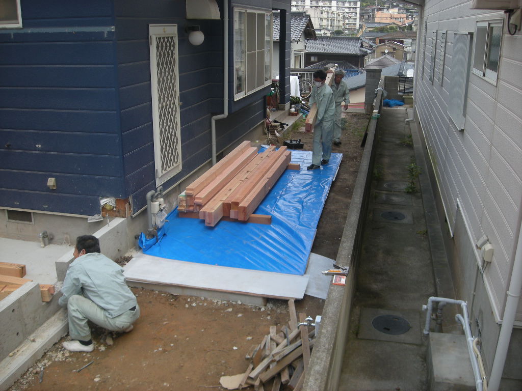 彦島某邸・大改装の増築工事の基礎工事も完了し、次は本格的に大工さんの出番となります。