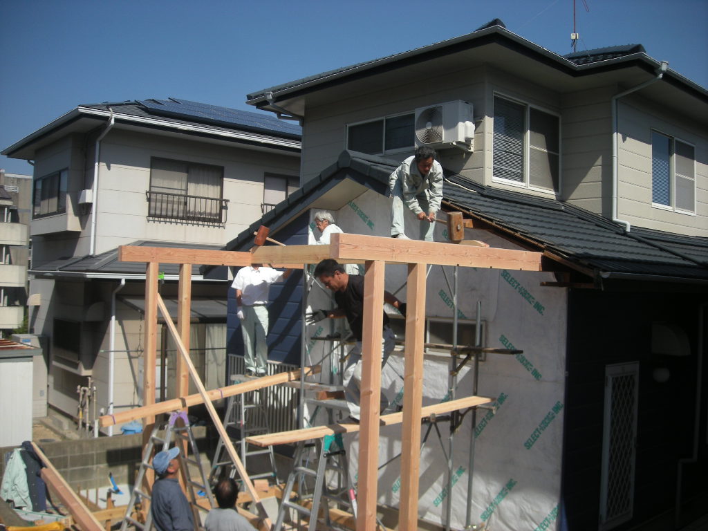*材料の搬入と準備が終わったら、いよいよ棟上げ作業を行います。