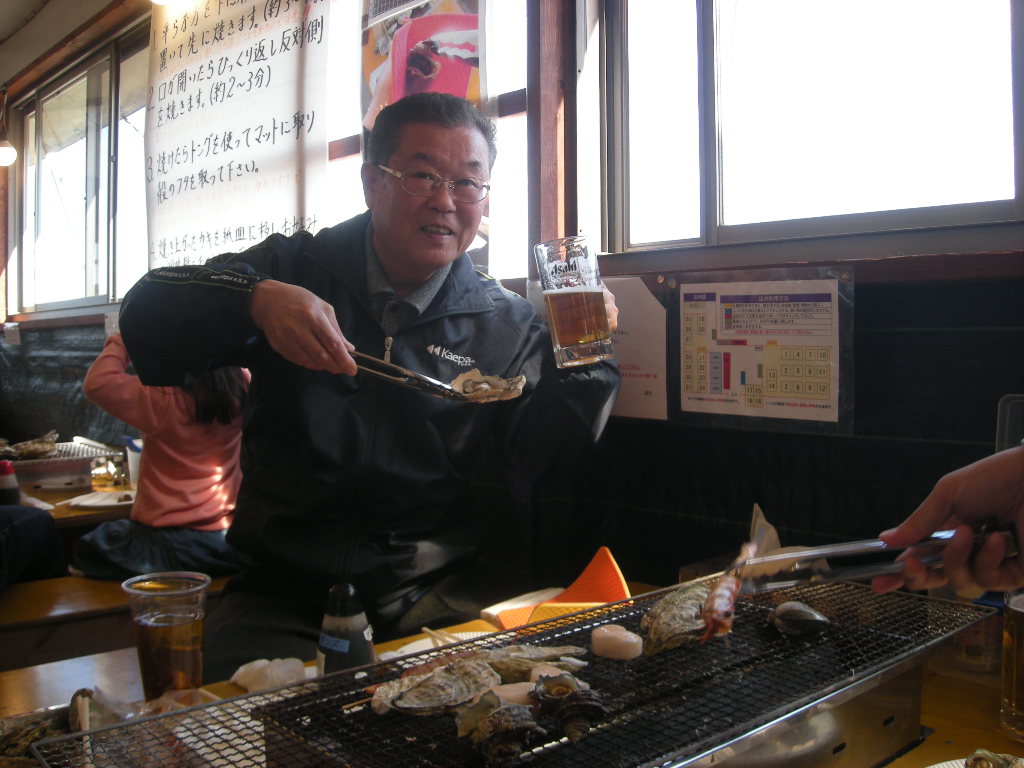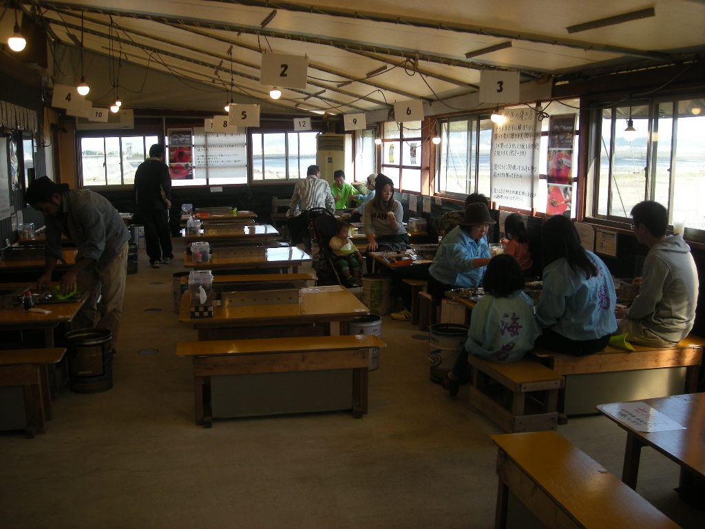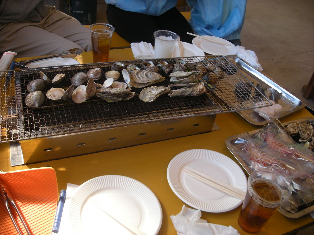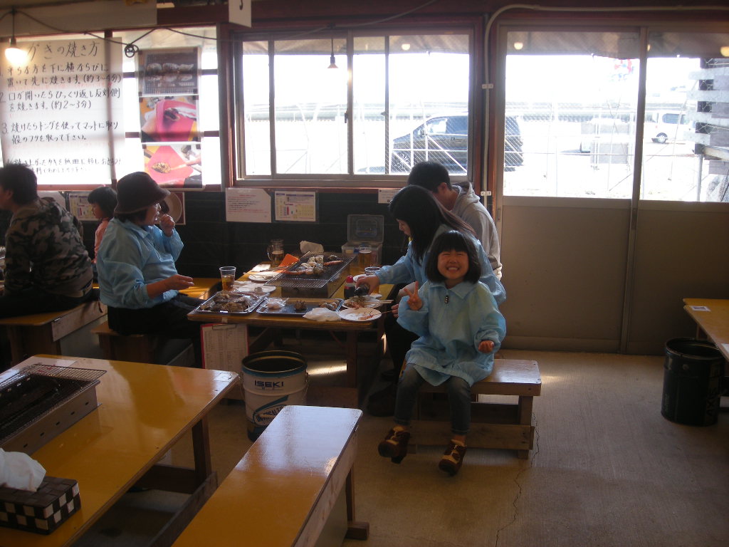 *その前に、先日長府の才川漁港にオープンしたばかりの「カキ小屋」でお昼を食べることにしました。