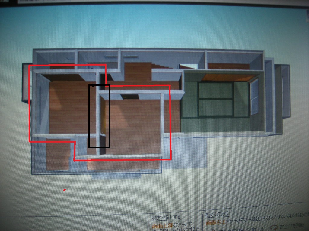 現在赤線で囲った洋間2部屋は建具(黒線部分)で仕切られているのですが、今度は1部屋を