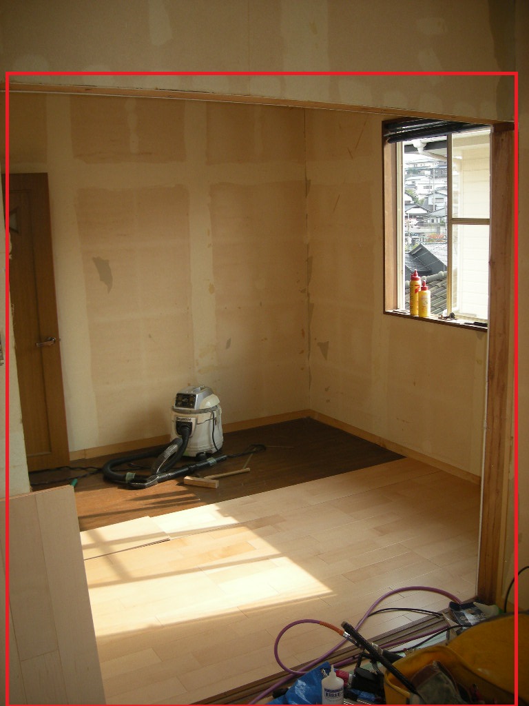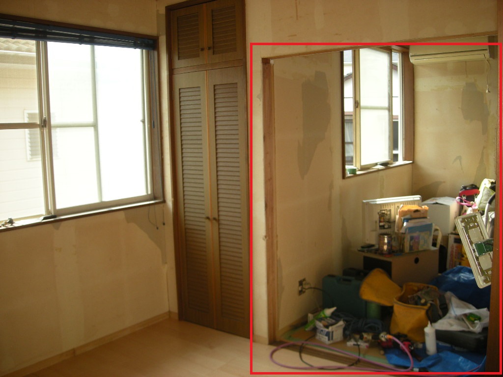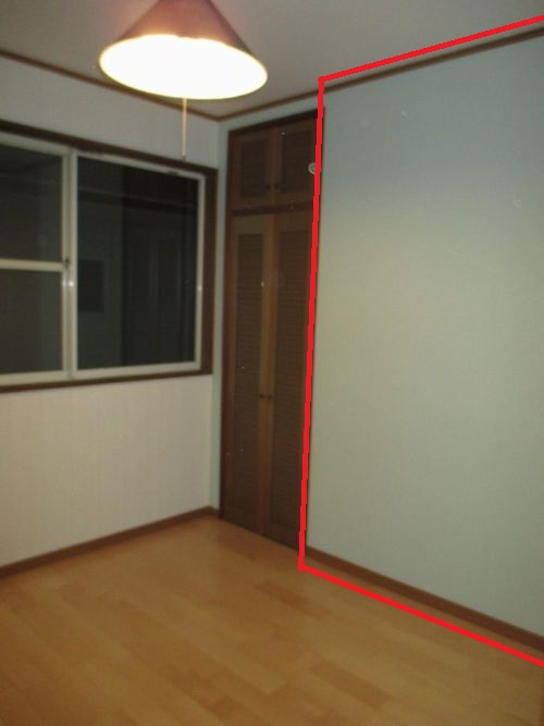 もう1部屋は、ご覧の様な部屋になりました(赤線で囲った部分の壁は、もと建具が