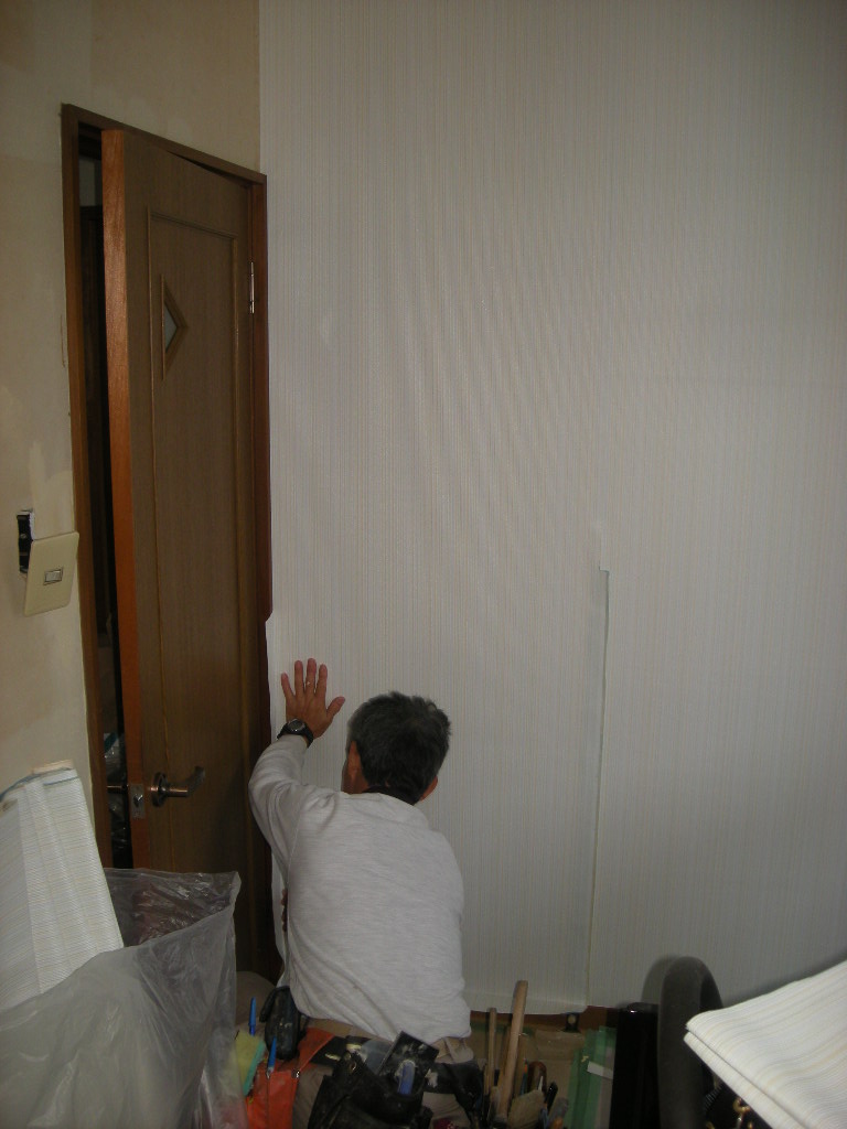 天井と壁廻りにクロスを張って行きます(2部屋)!!