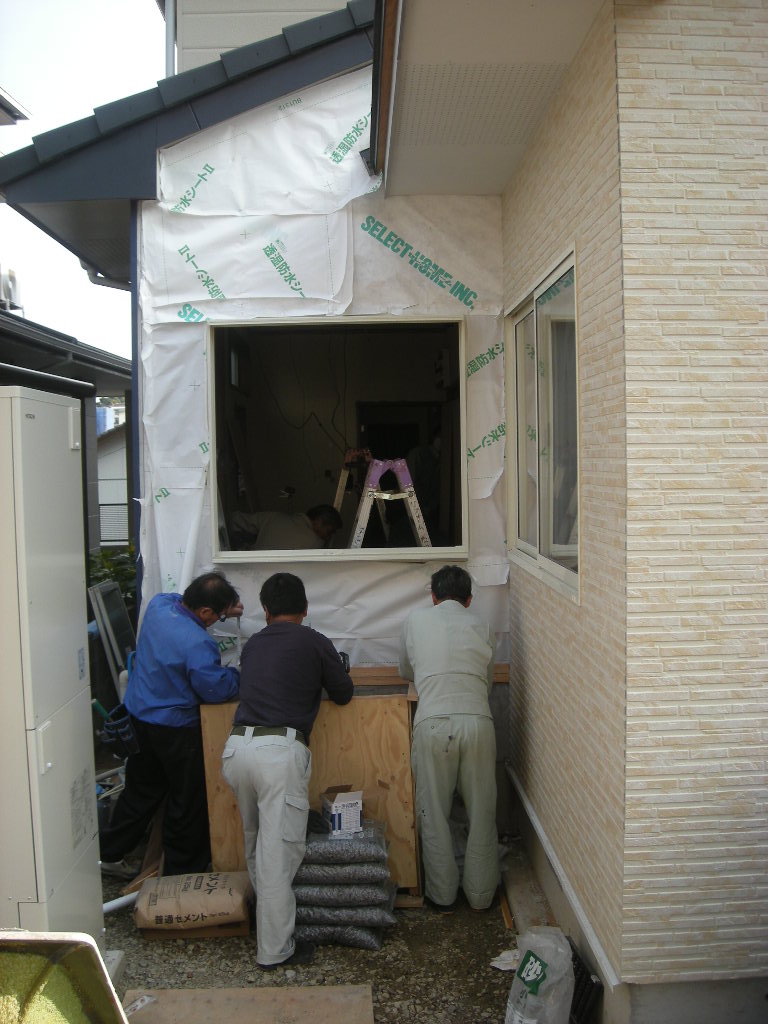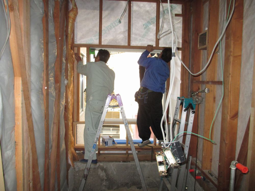 新規のサッシは巾を若干小さくし、位置も少し上に取付けます!!