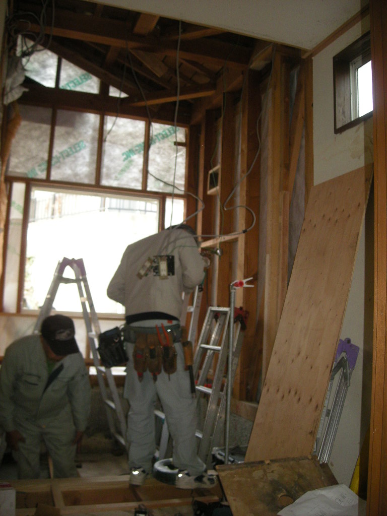 中では電気屋さんが各配線の改修工事を行っています!!