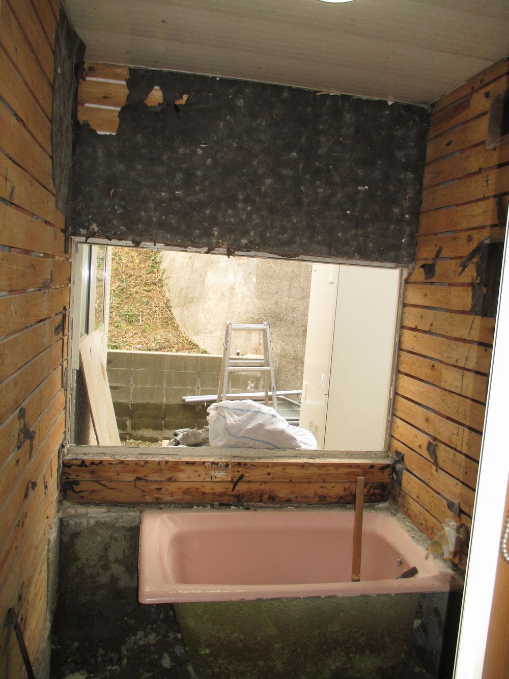 つづいて浴槽廻りを解体し浴槽を撤去します