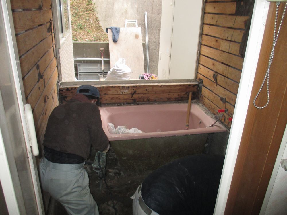 (普通では考えられない程浴槽の廻りをコンクリートで固めているため大変な作業となりました!!