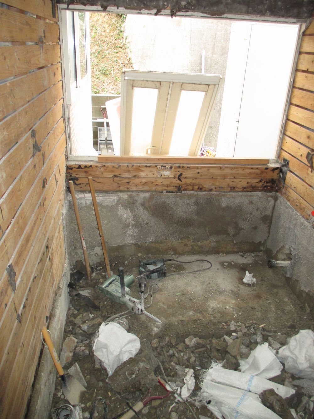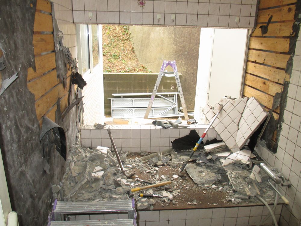 なんとか浴槽を撤去し、入口のドアや壁も解体、撤去しました!!