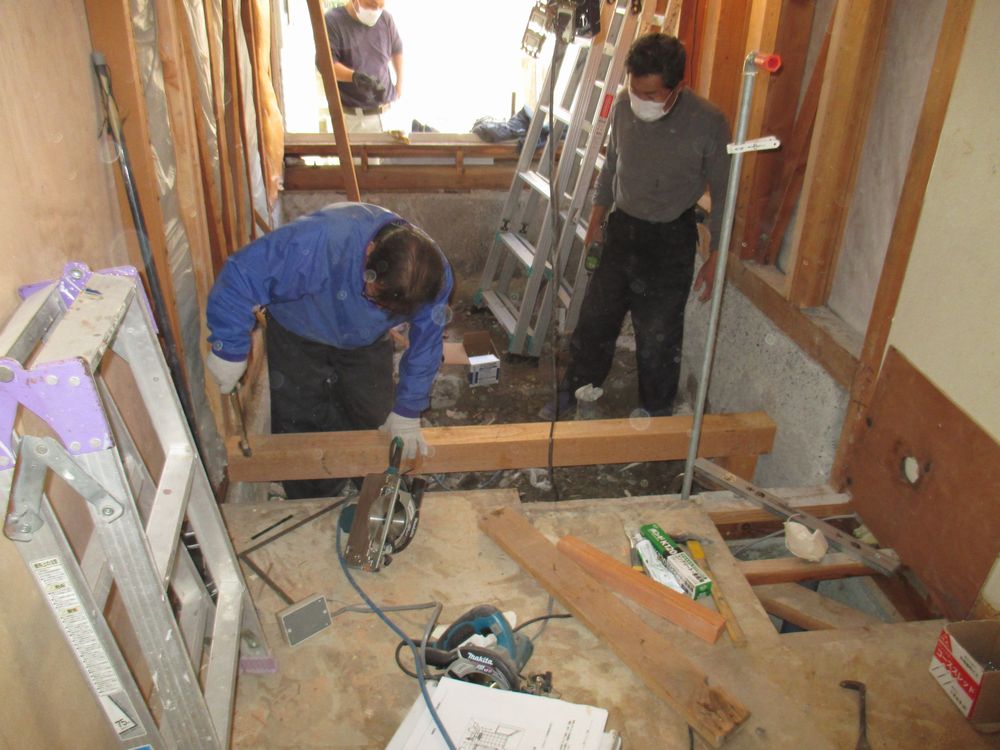 洗面所を広くするために浴室側に土台を施工します!!