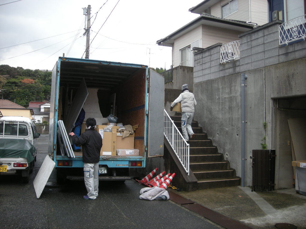 現場にシステムバスの部材が到着しました(これを中の運び入れる作業も一仕事です)!!