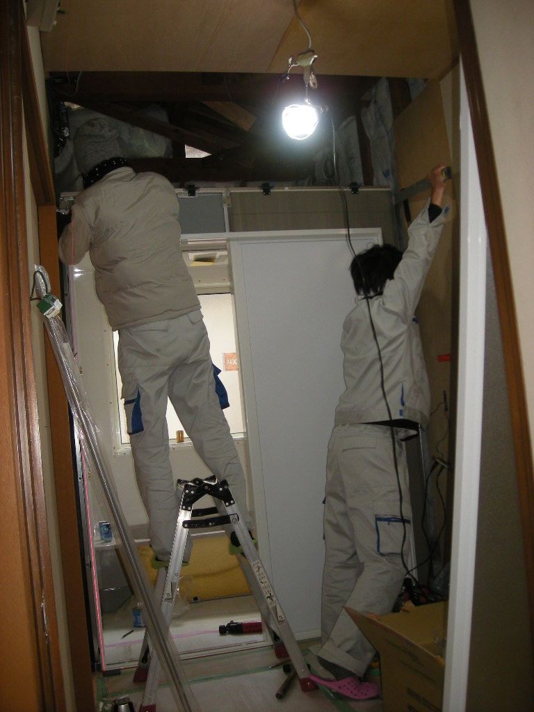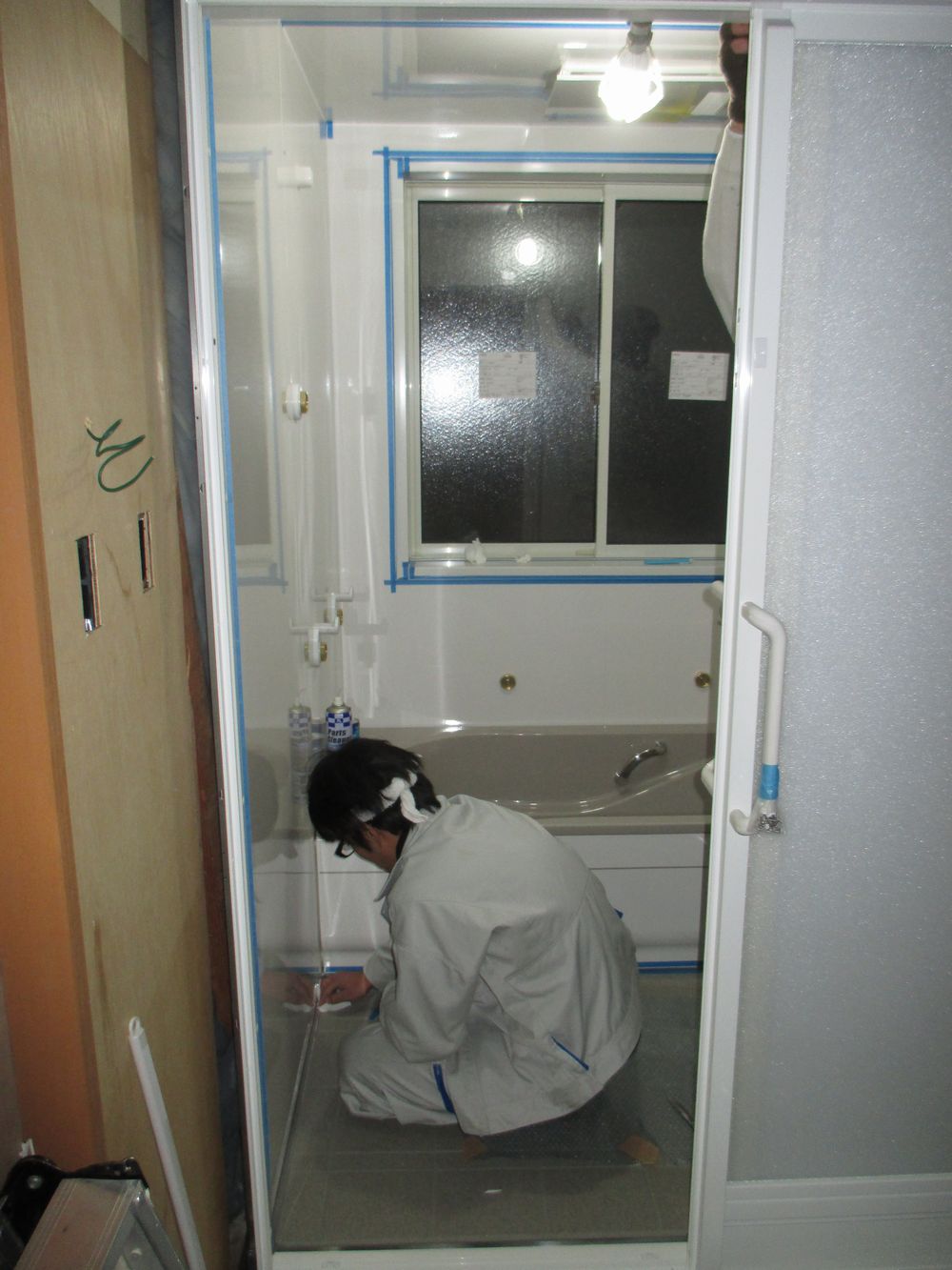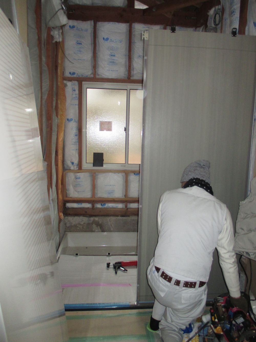 彦島某邸の大改装工事も、前回までに浴室と洗面所の解体からシステムバスを設置する