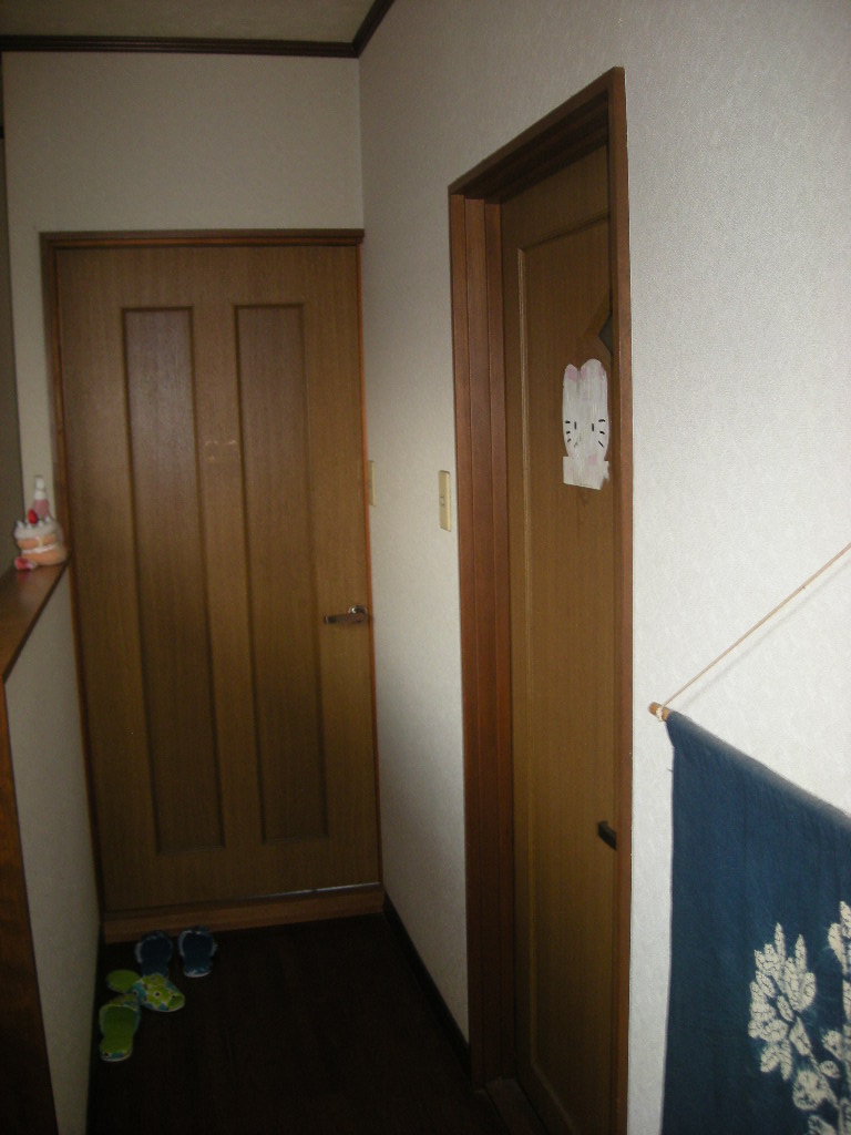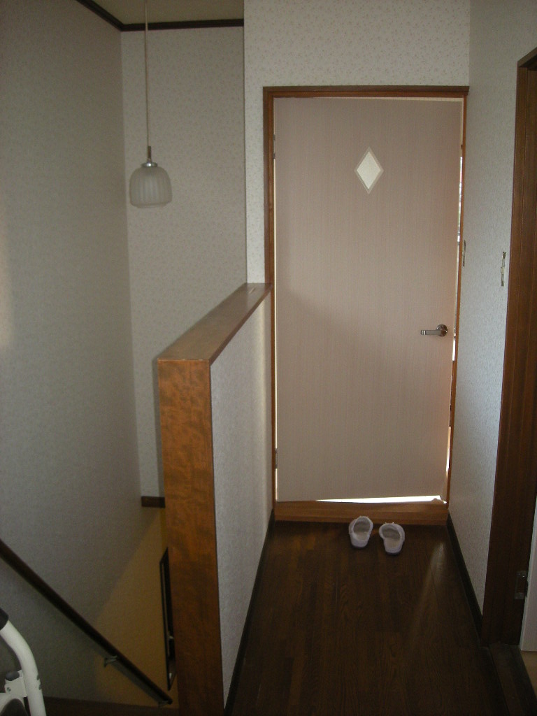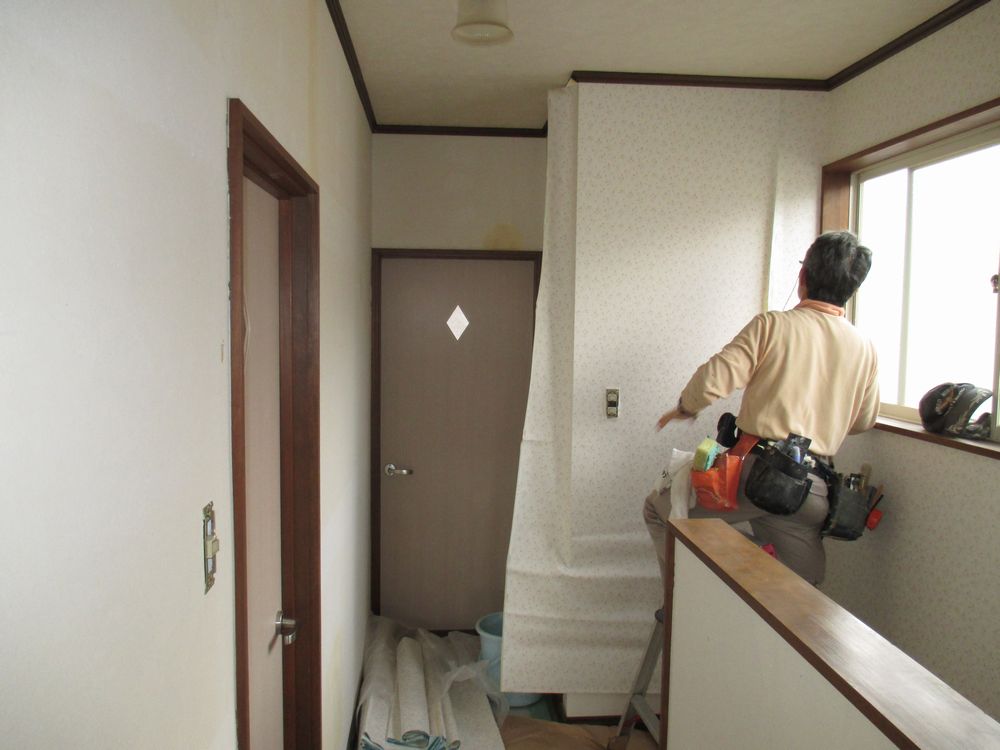 *2階の廊下と階段廻りの壁のクロスも張替えます(各部屋への入口ドアも新しく交換しました)!!