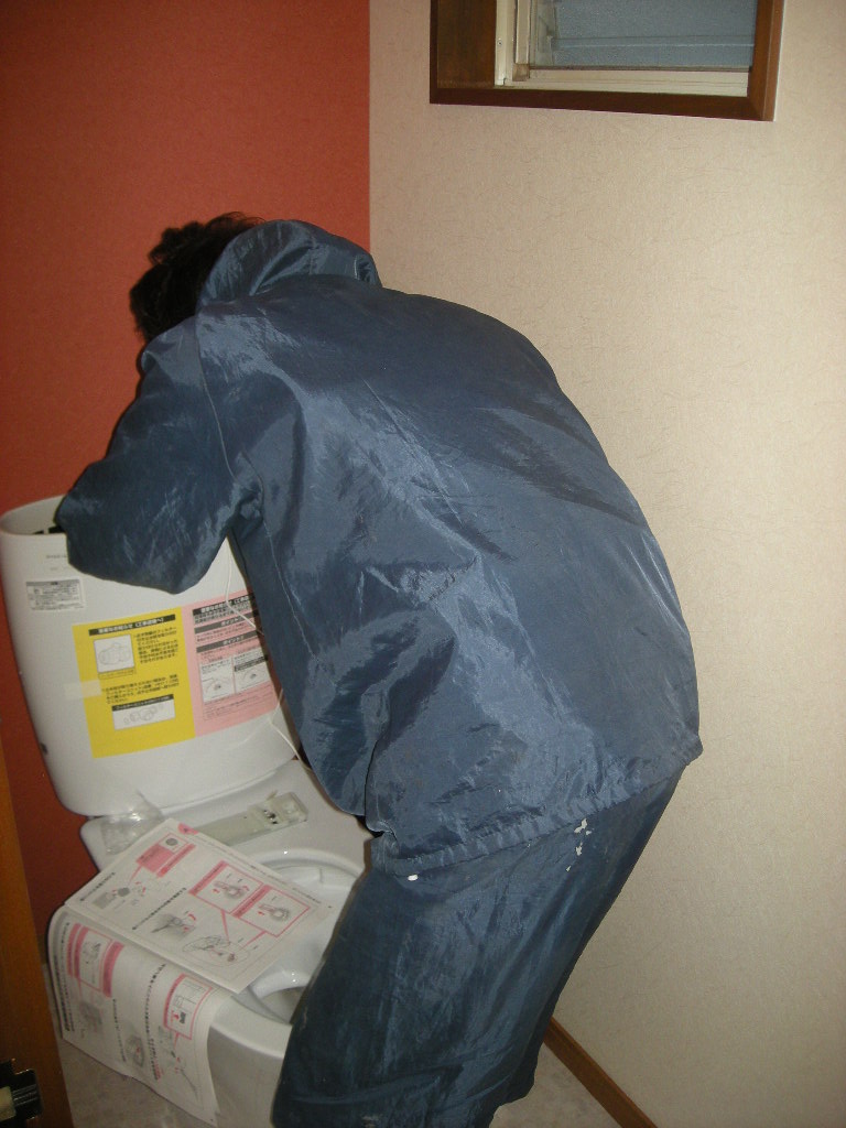 内装工事を行った後、新規の便器や備品を取付けます!!