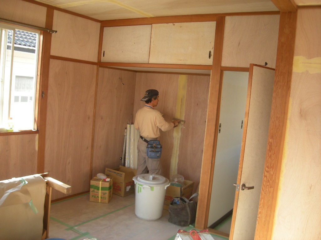 前回まで床の改修<畳からフローリングへ>から内装の下地づくりまで終わっていましたので