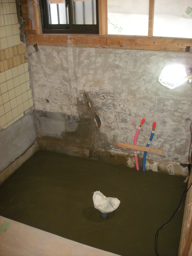 土間コンを打ち、これでシステムバスを組み立てる前の準備が、ほぼ完了です!!