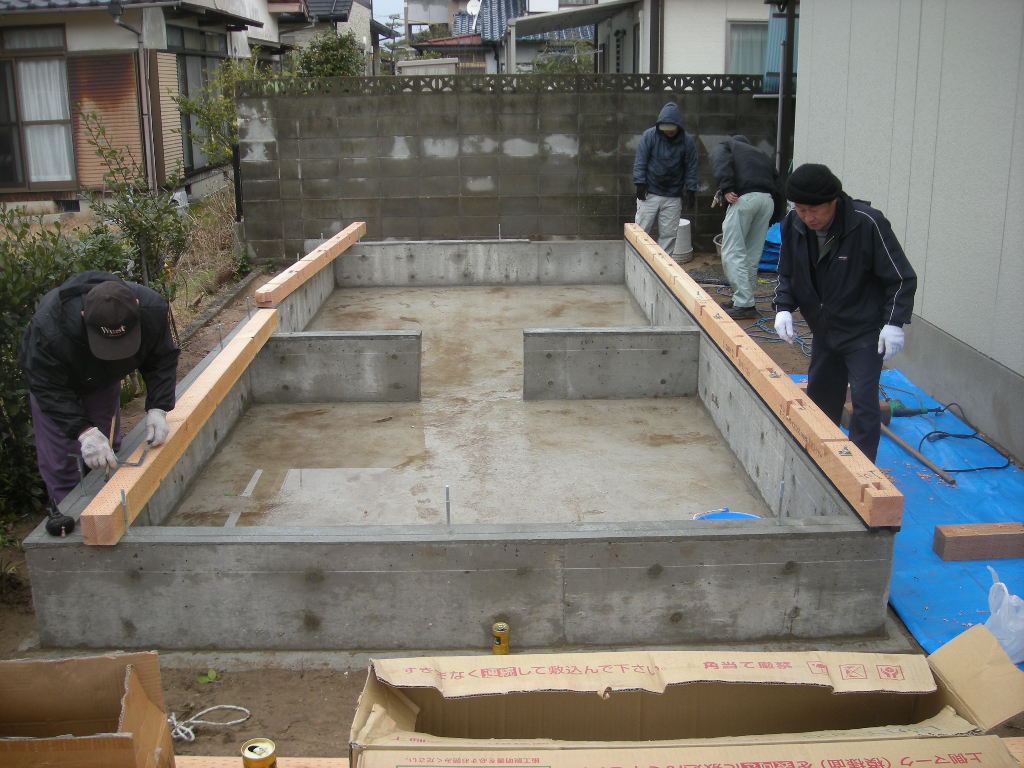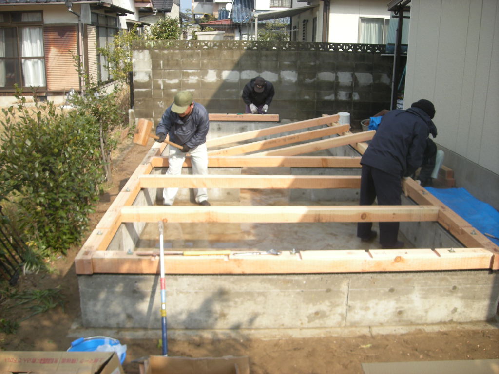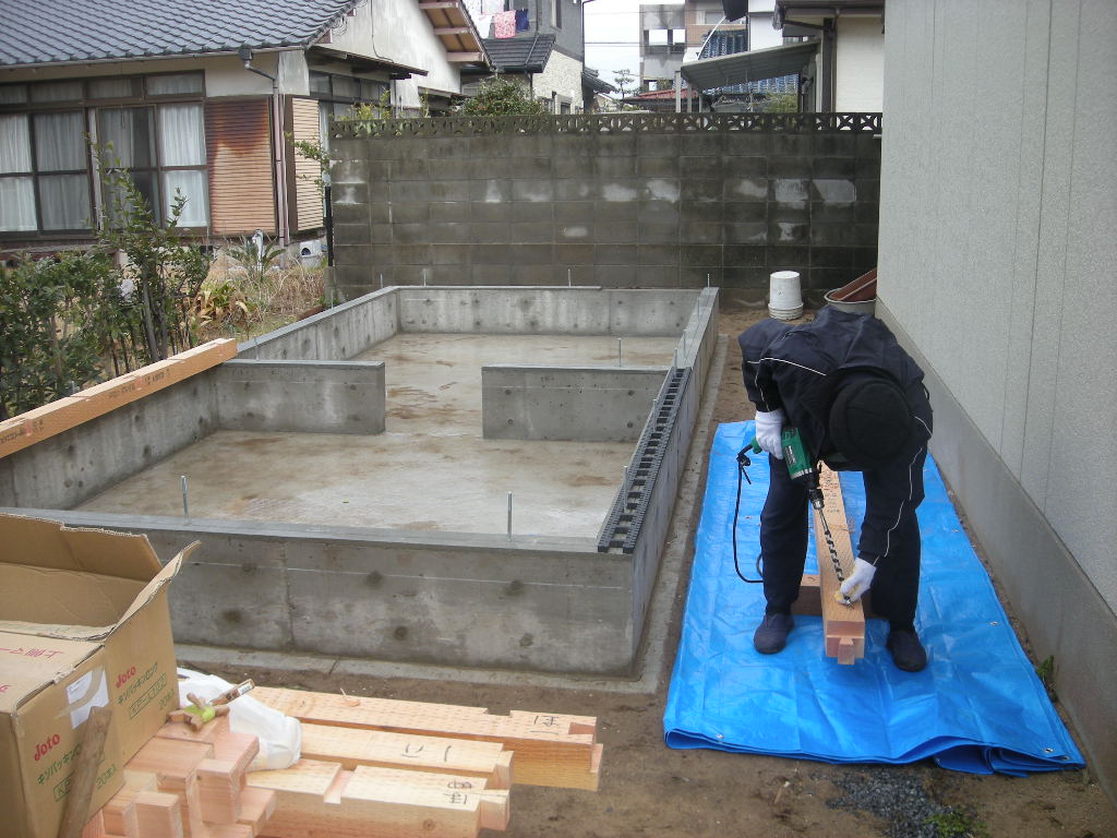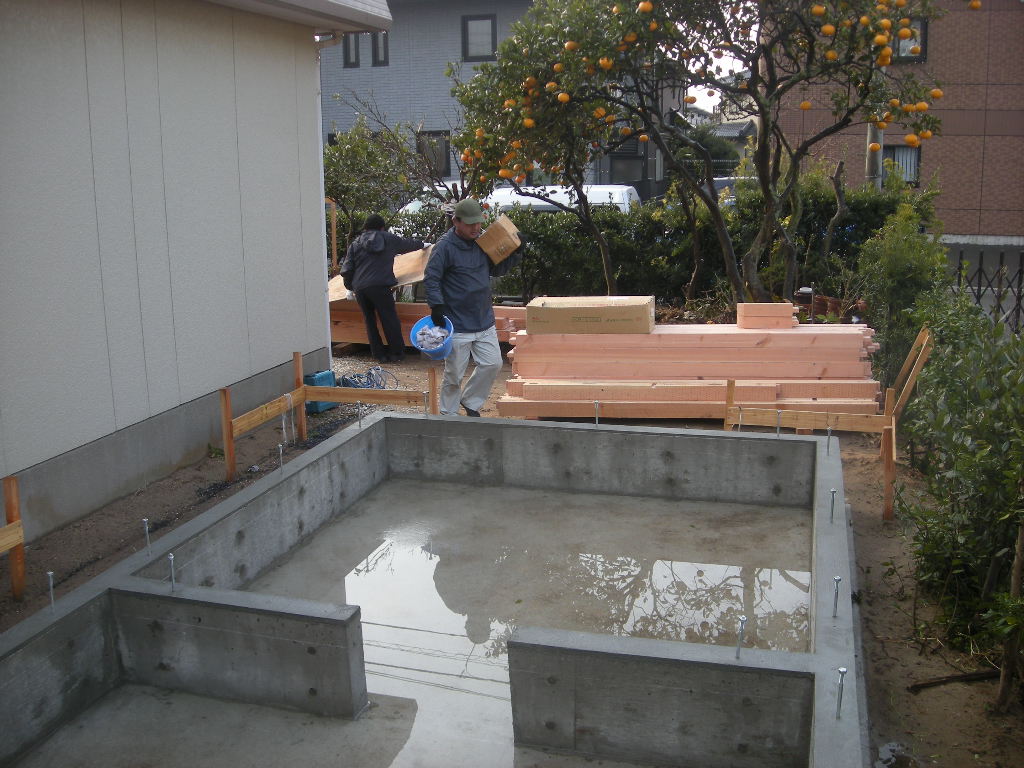 綾羅木某邸の離れの新築工事も基礎工事までが終わり、次はいよいよ大工さんが