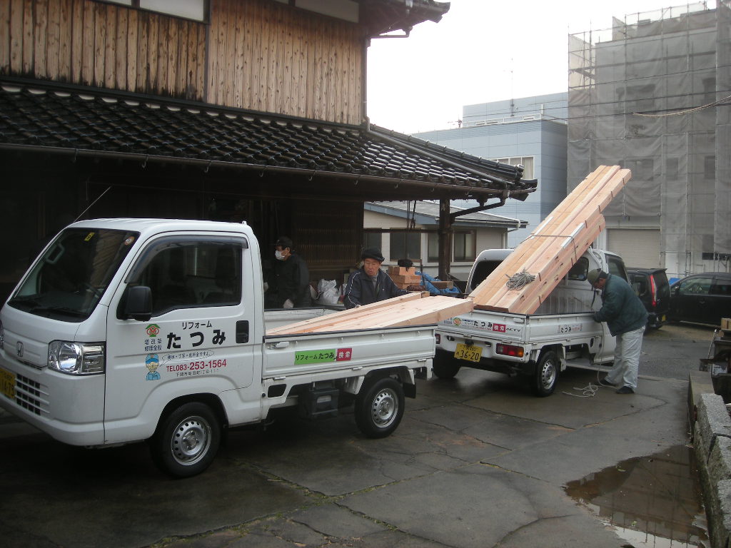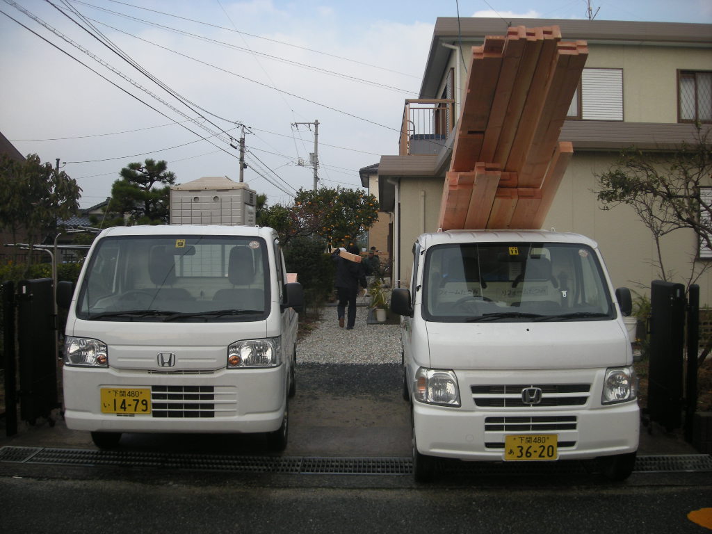 会社の作業場で加工した材料を車に積み込み現場へと運びます!!