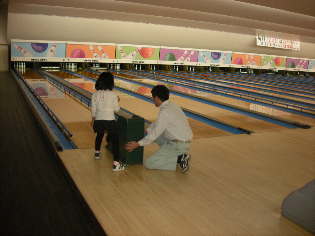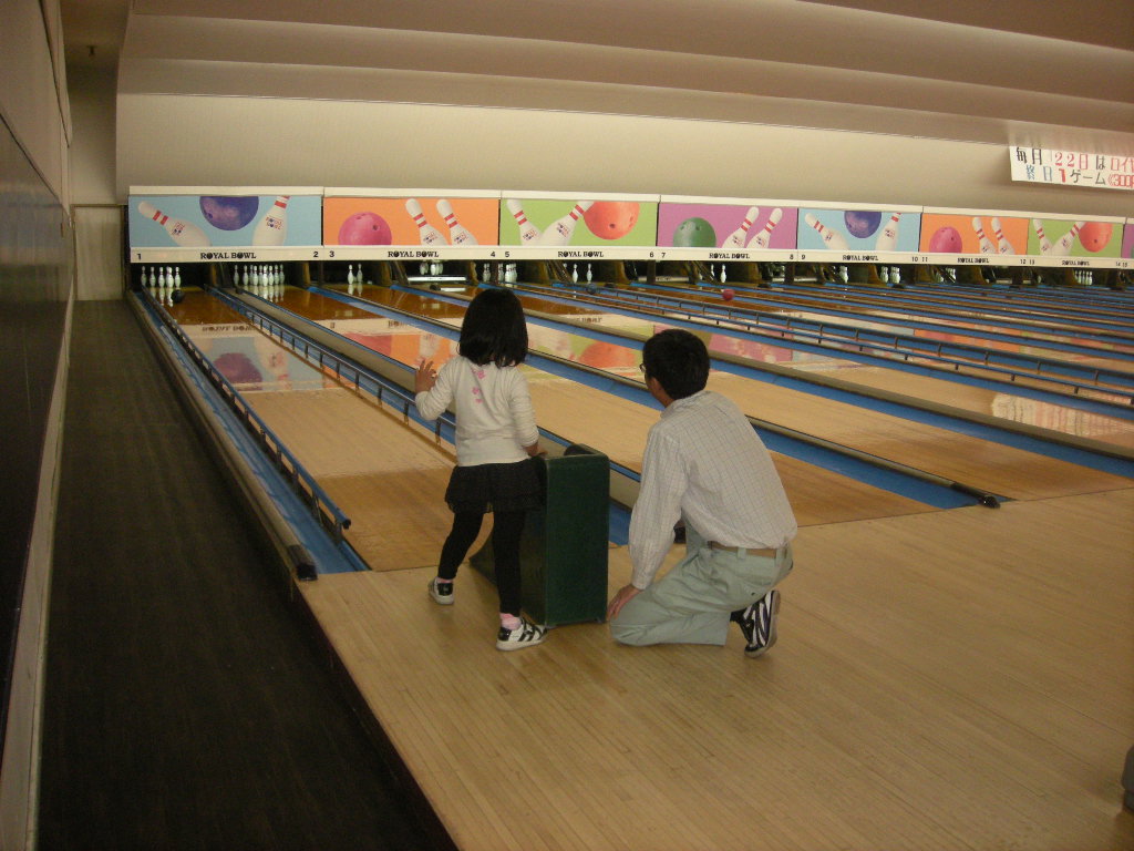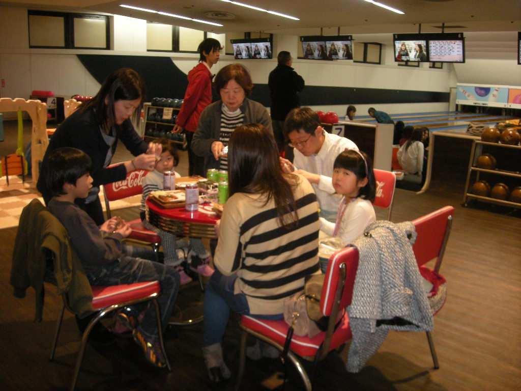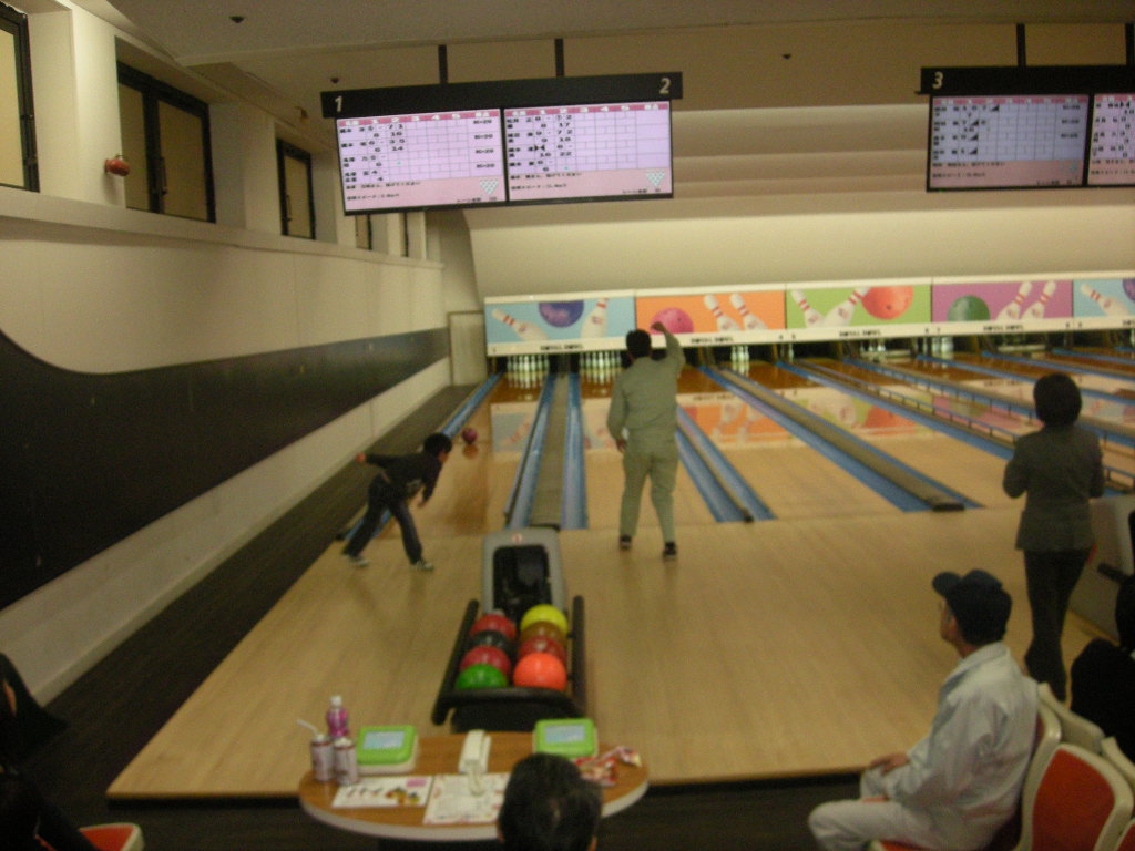 左のレーンで息子のお嫁さんが投げました(娘の明ちゃんが後ろで応援しています)!!