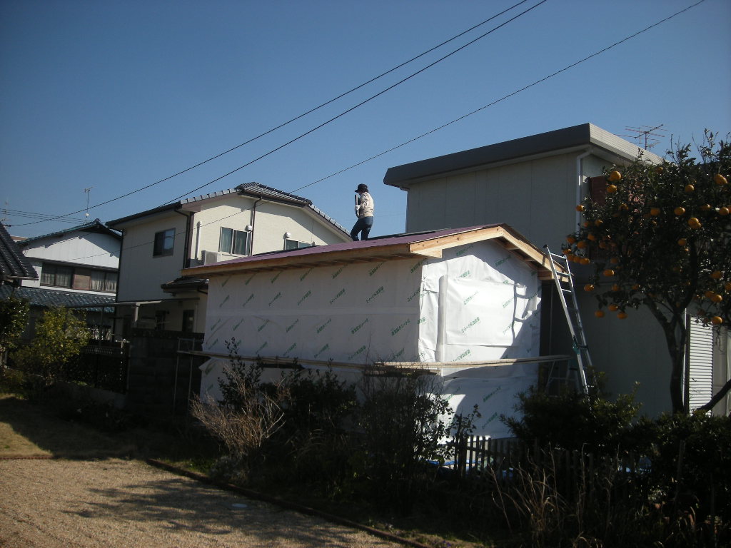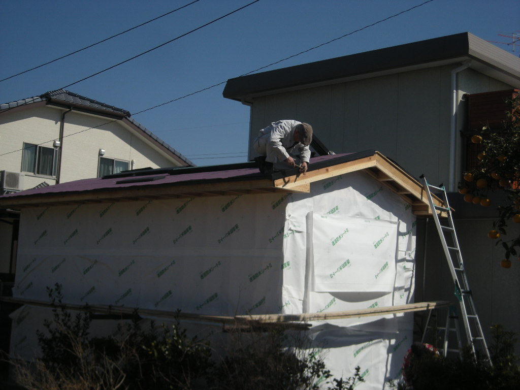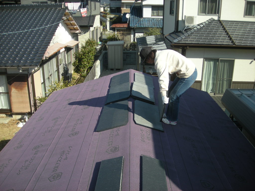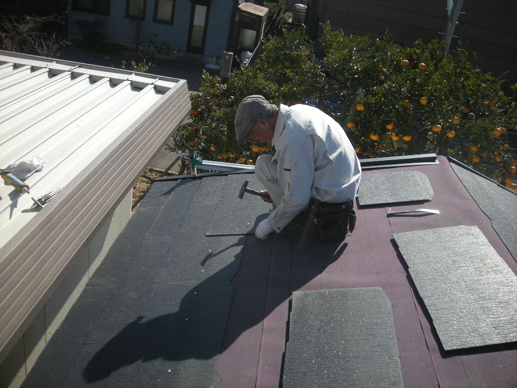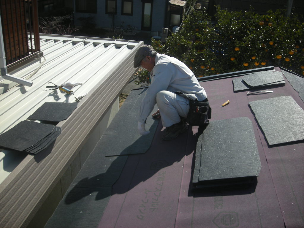 綾羅木某邸の、離れ新築工事も次は屋根瓦(コロニアル瓦)の施工へと進みます。