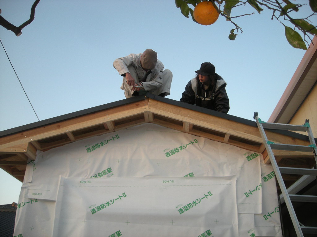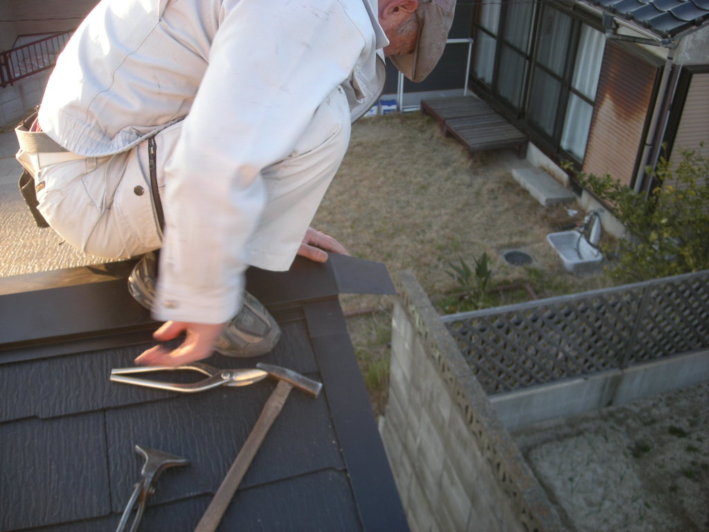 最初に矢切り部分の板金の取付けから始めます!!