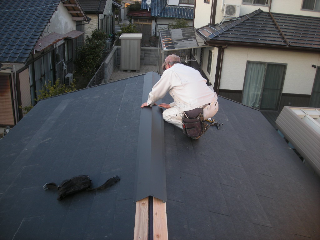 以上で瓦(コロニアル)の施工の完成です!!