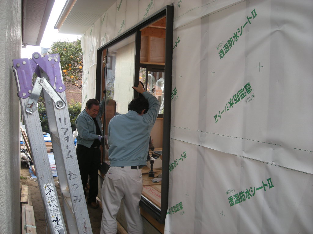 枠の取付けが終わったら、サッシ屋さんが障子(ペアガラス)をはめ込みます!!