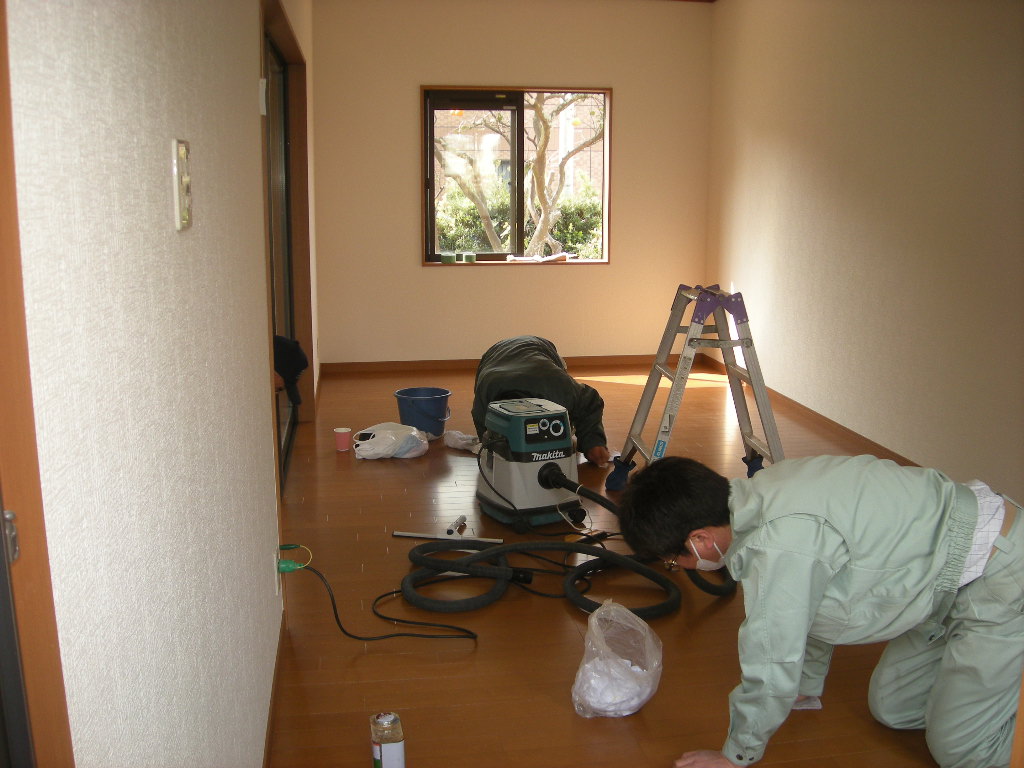 以上で室内の作業が終わり、養生を取り片付け、清掃をします!!