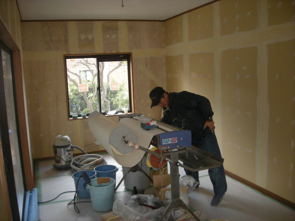 クロス屋さんクロスを張る前にパテ処理をし、クロスを張る準備をします!!