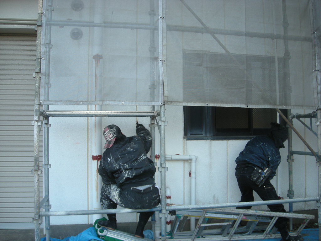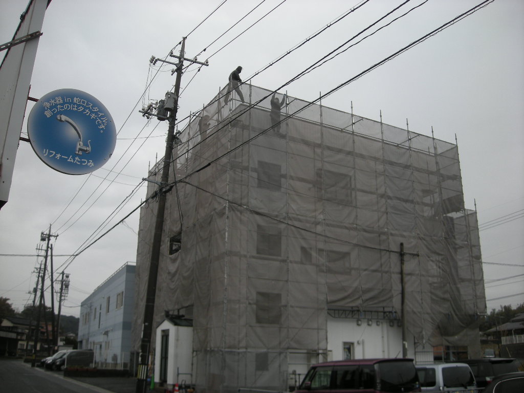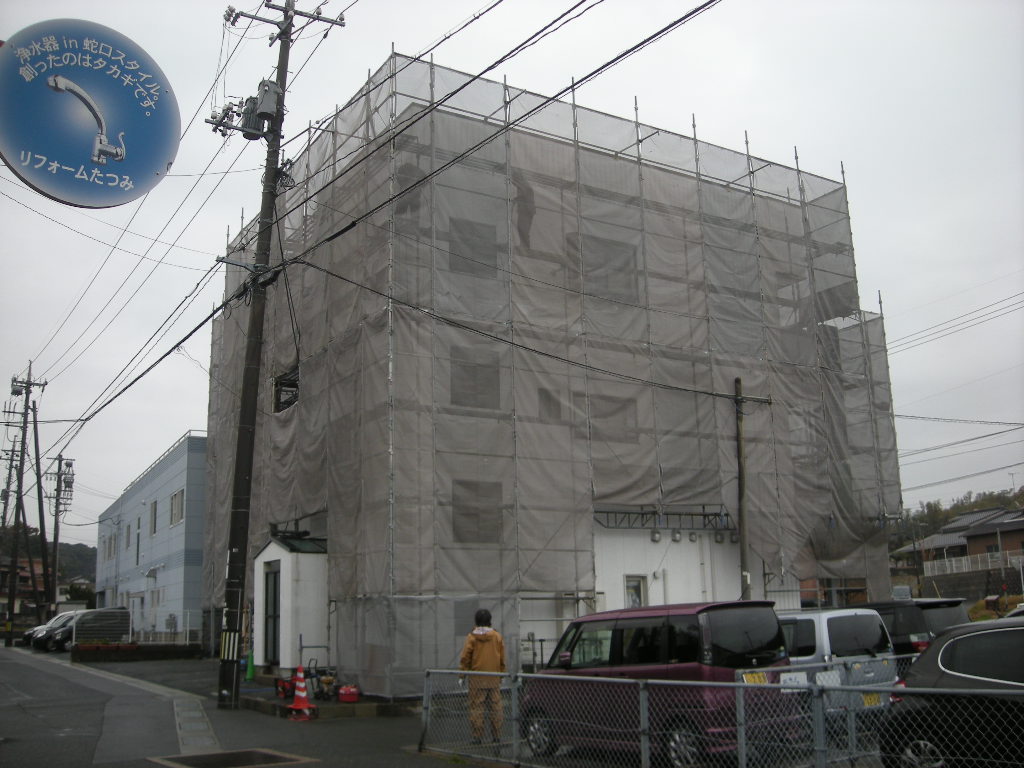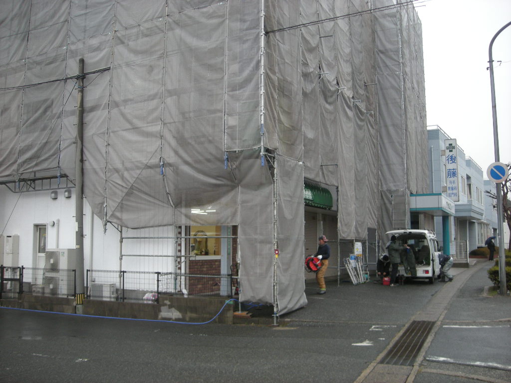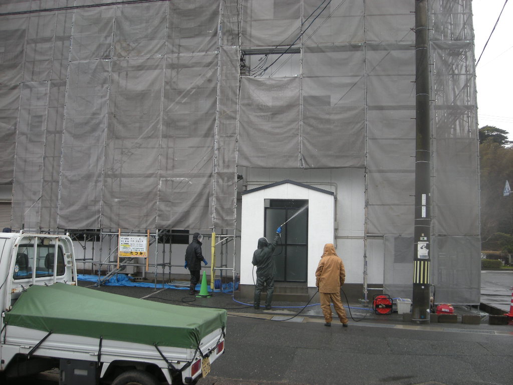 ◎前回足場組みが終わり、次は塗装工事に入る前に外廻り全体の高圧洗浄作業
