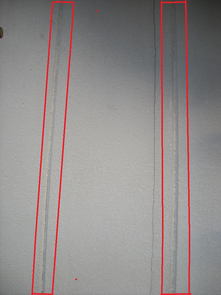 ご覧の様に、ALC構造の壁の目地部分(赤線で囲った部分)にひび割れが有ります!!