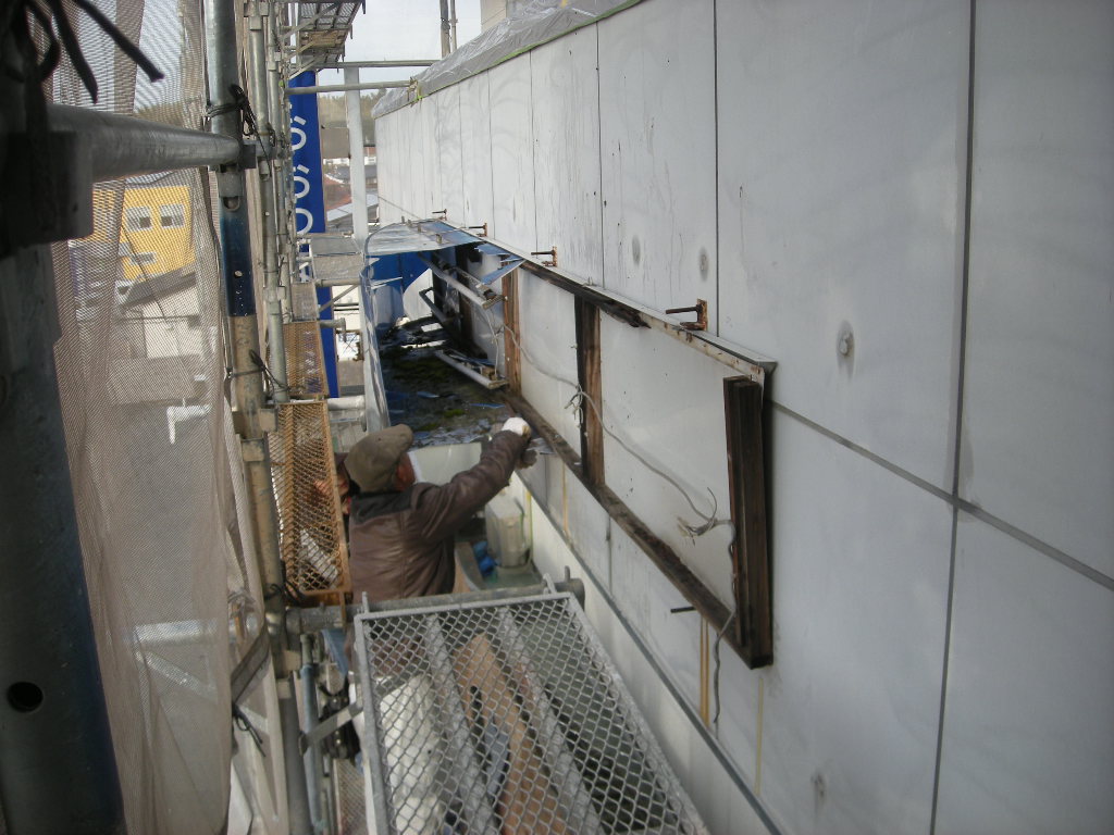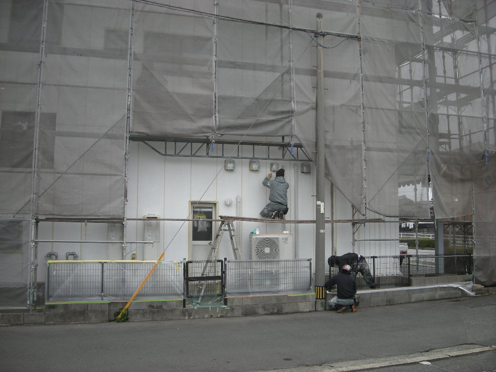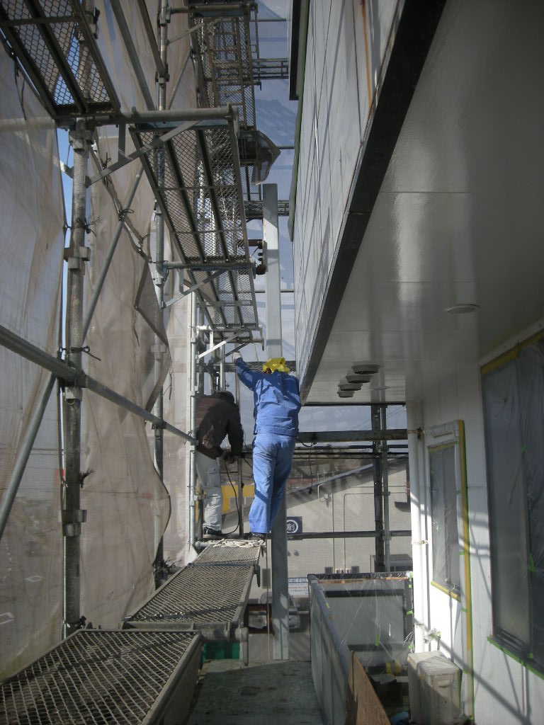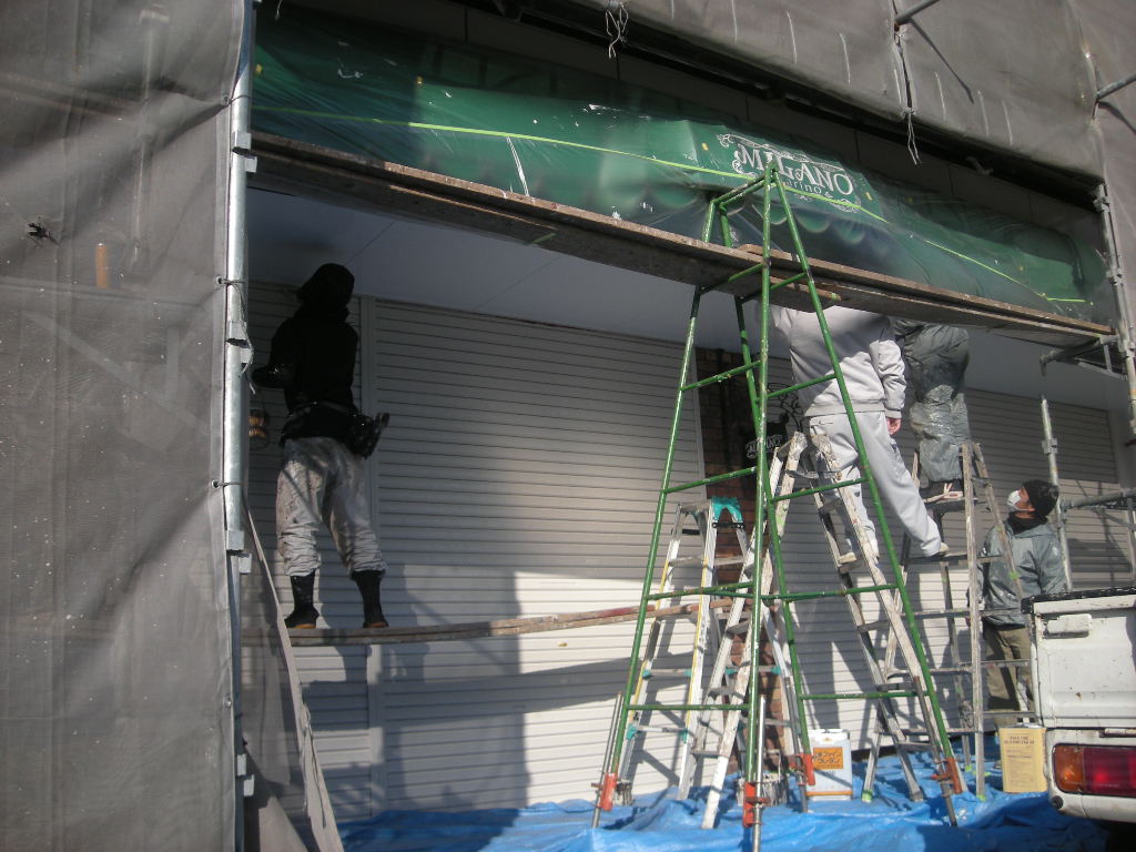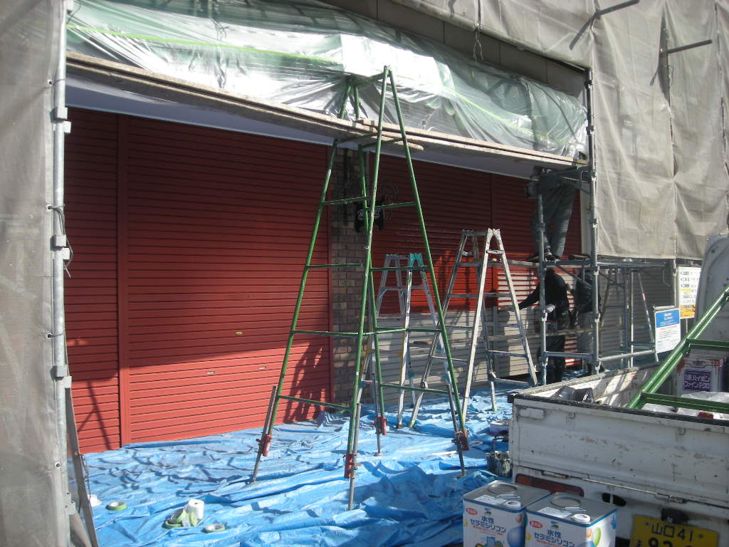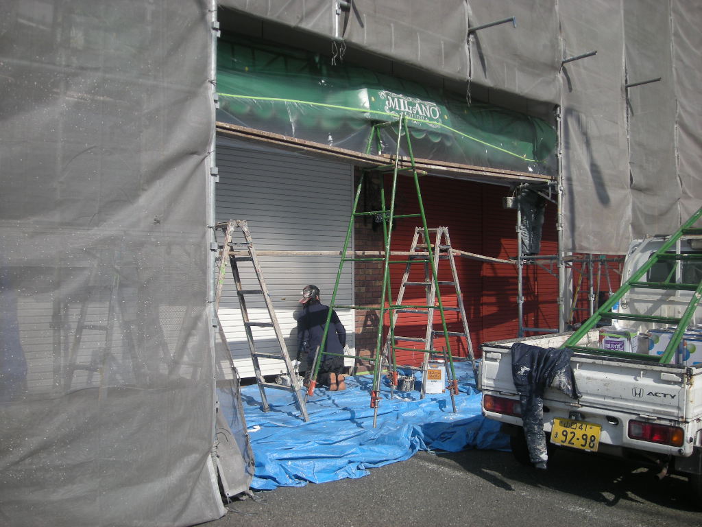 看板の撤去作業も終わり、いよいよ本格的に塗装作業に入ります。