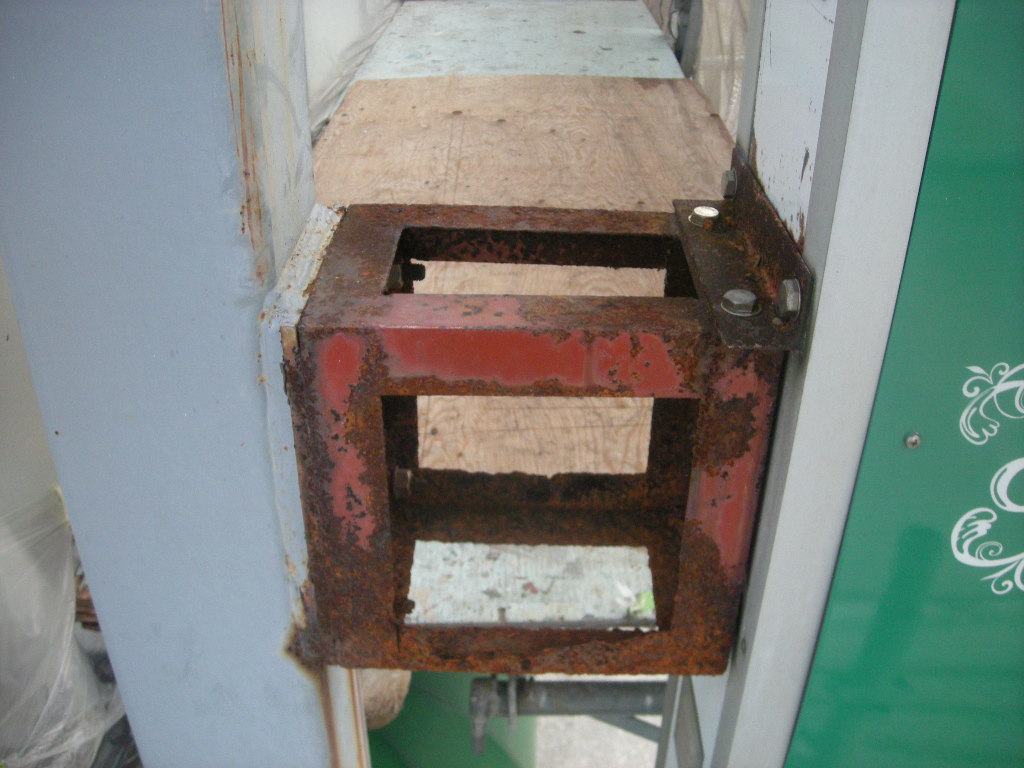 柱に取付けられている受け板は、将来又看板を取付ける時のために残しました