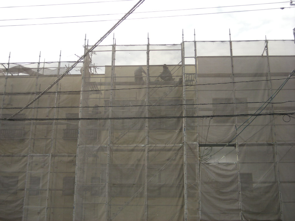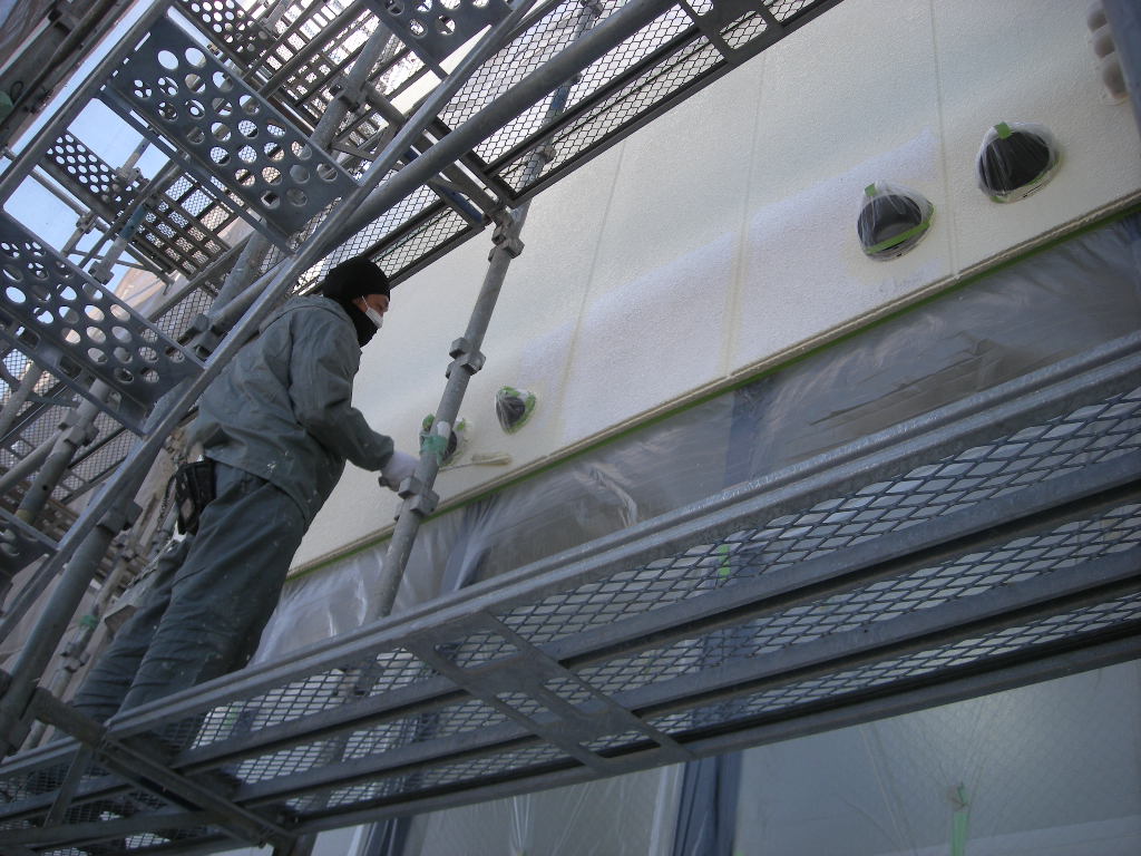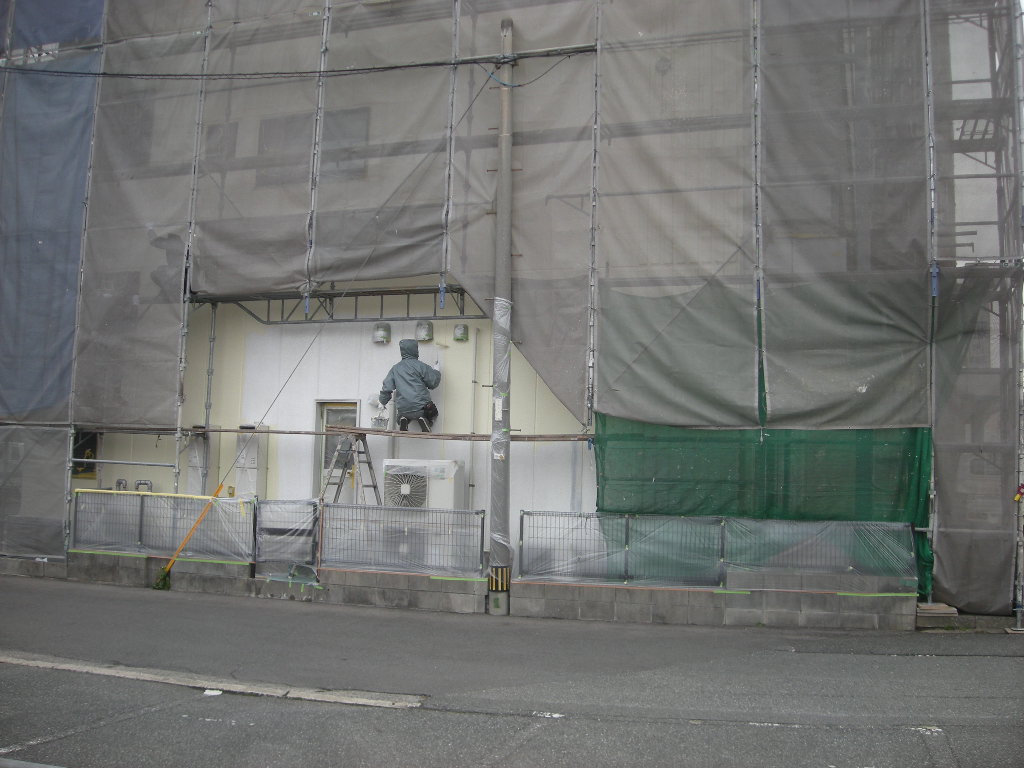 塗装作業の様子を養生シートの中の下から覗いて見ました!!