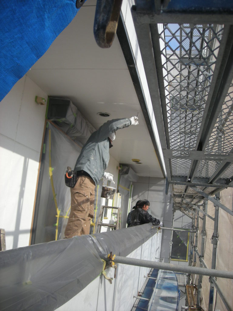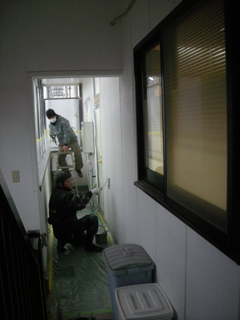 裏側の外廊下の壁も塗装します!!