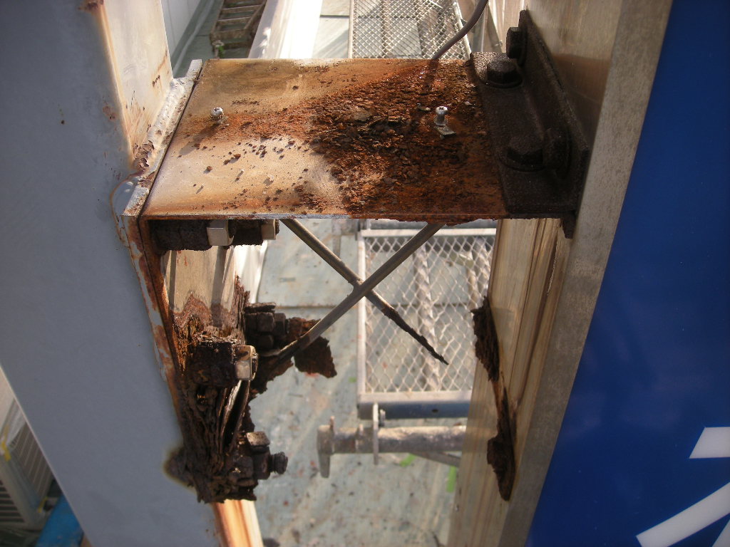 下の美容院さんの看板の受け部材の状態もあまり良くないため、