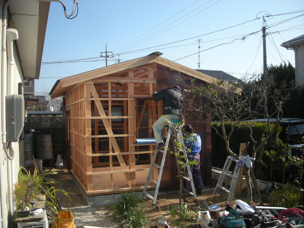 ◎その、お宅から今度は6畳の倉庫の新設工事の依頼があり、その工事の様子を先日から紹介して来ました。