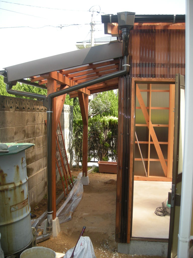 東側(道路側)の屋根も、ご覧の様に長くなりました!!