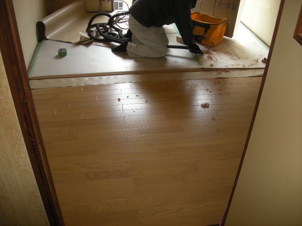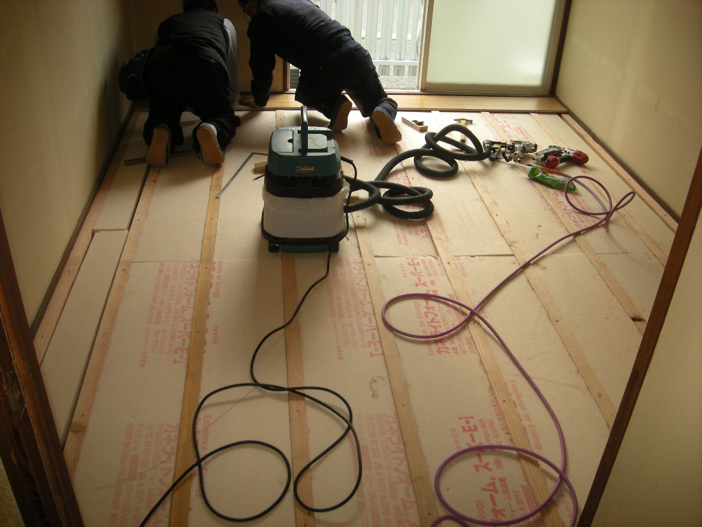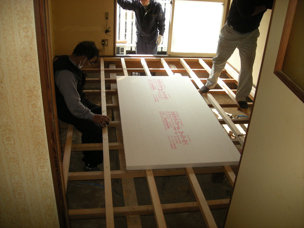 ・床…既存畳撤去後下地づくりをし、断熱材を施工後フローリング仕上げに