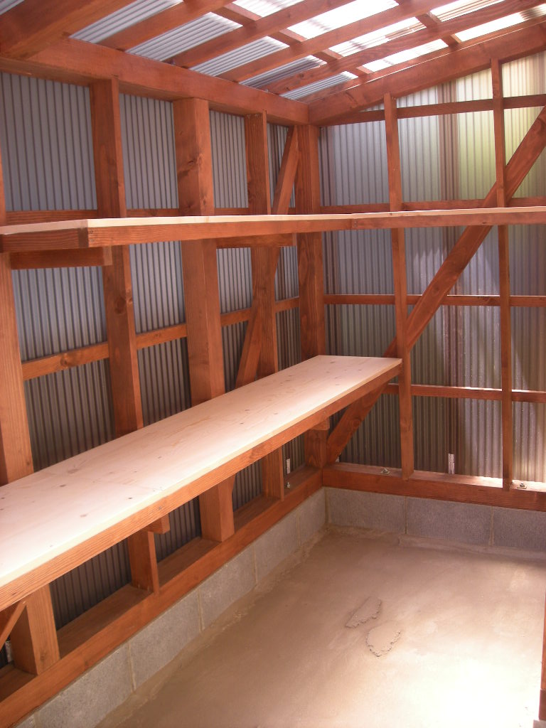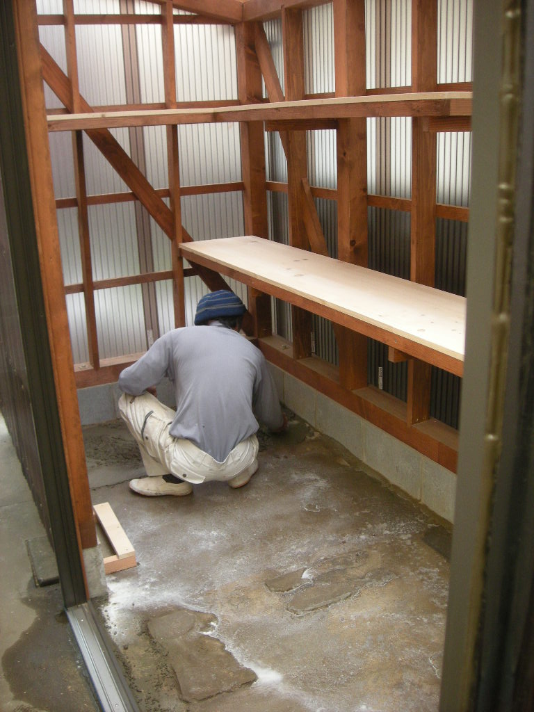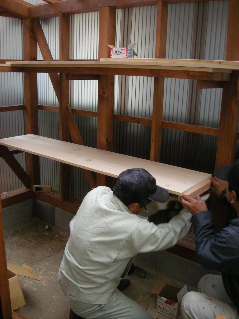 後ろに2段(上‥出巾300、下‥出巾400、側面…1段<出巾300)の棚の完成です!!