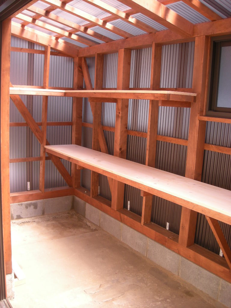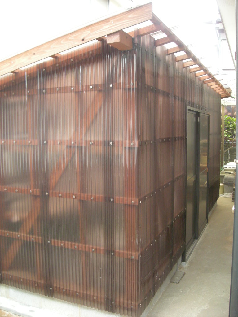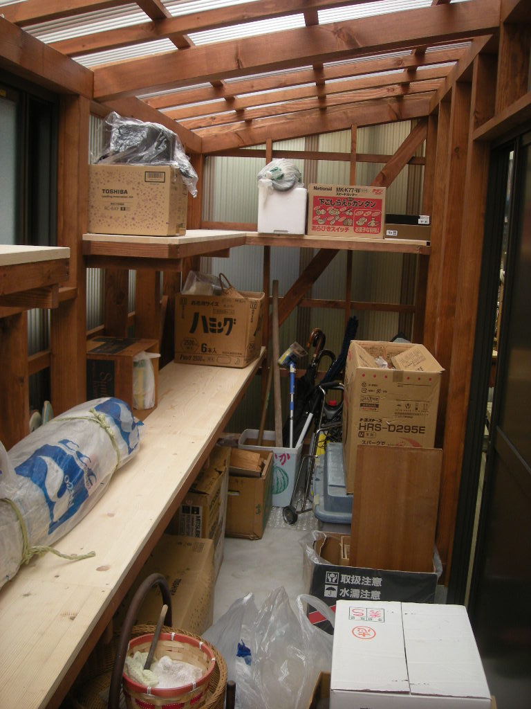 施主さんも、以前の物置よりも荷物が倍近く入る様になり、又プロパンガスのボンベを母屋の側面に