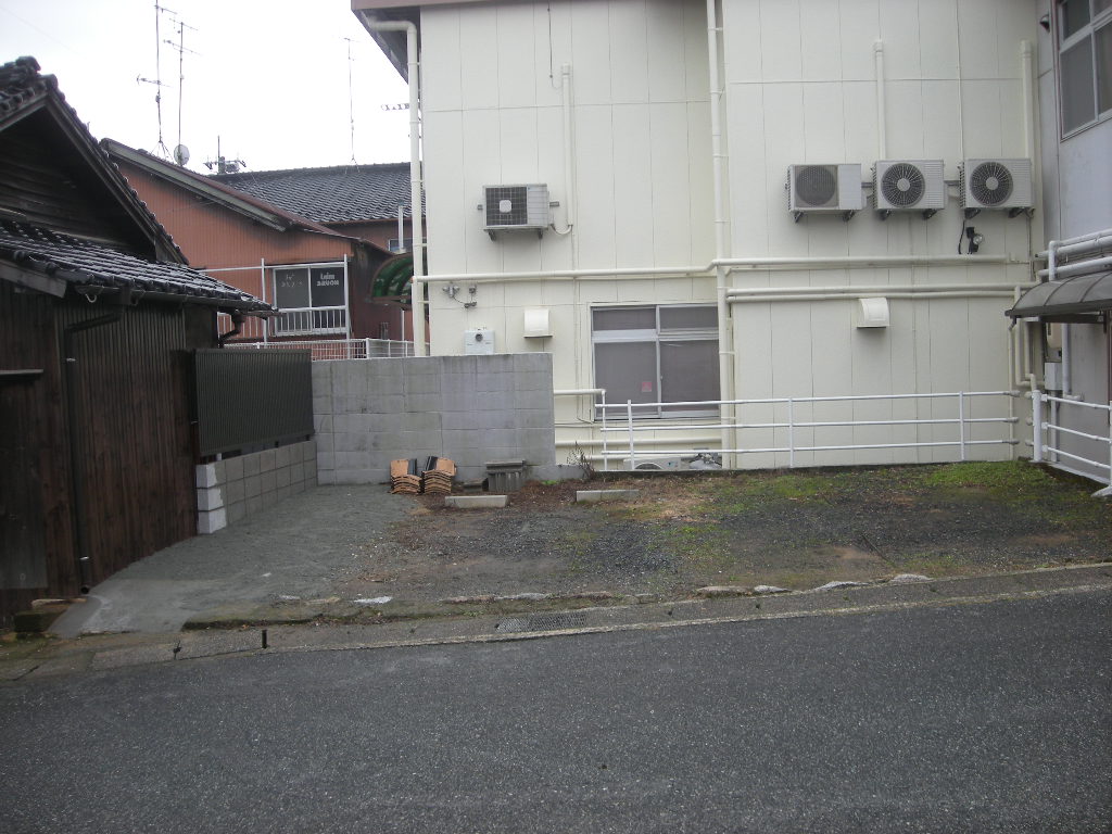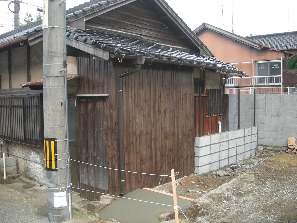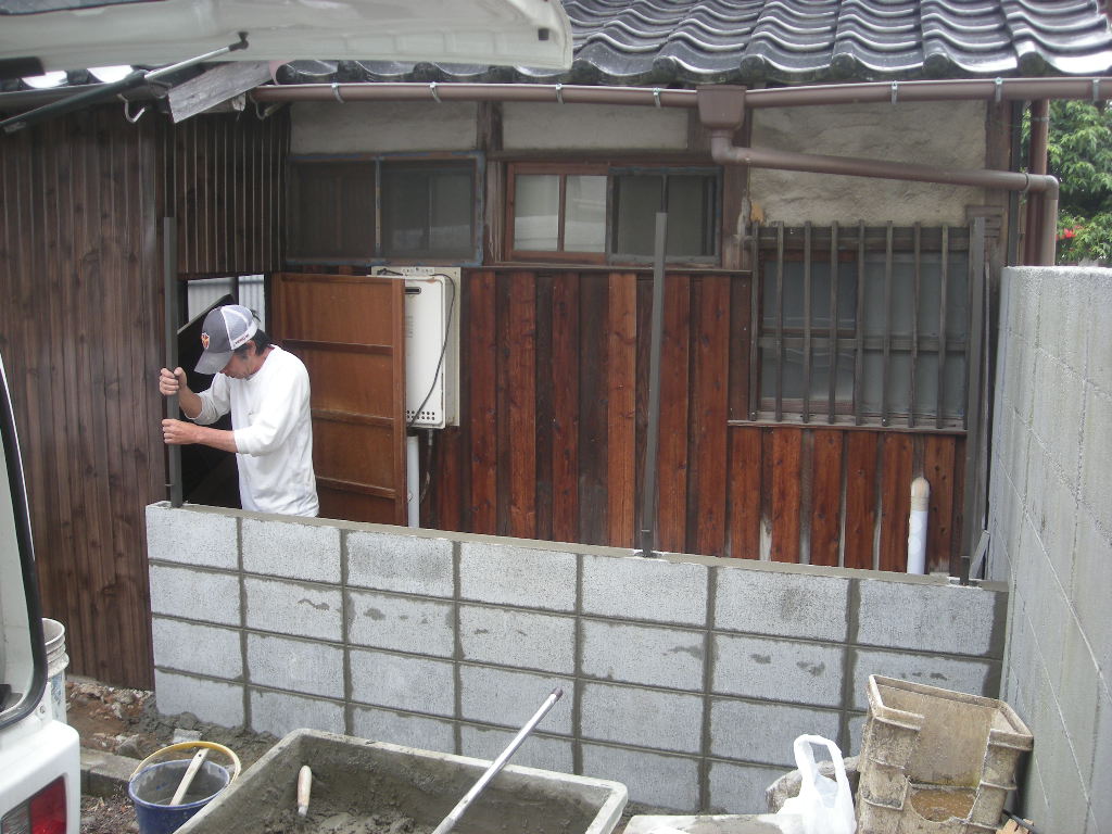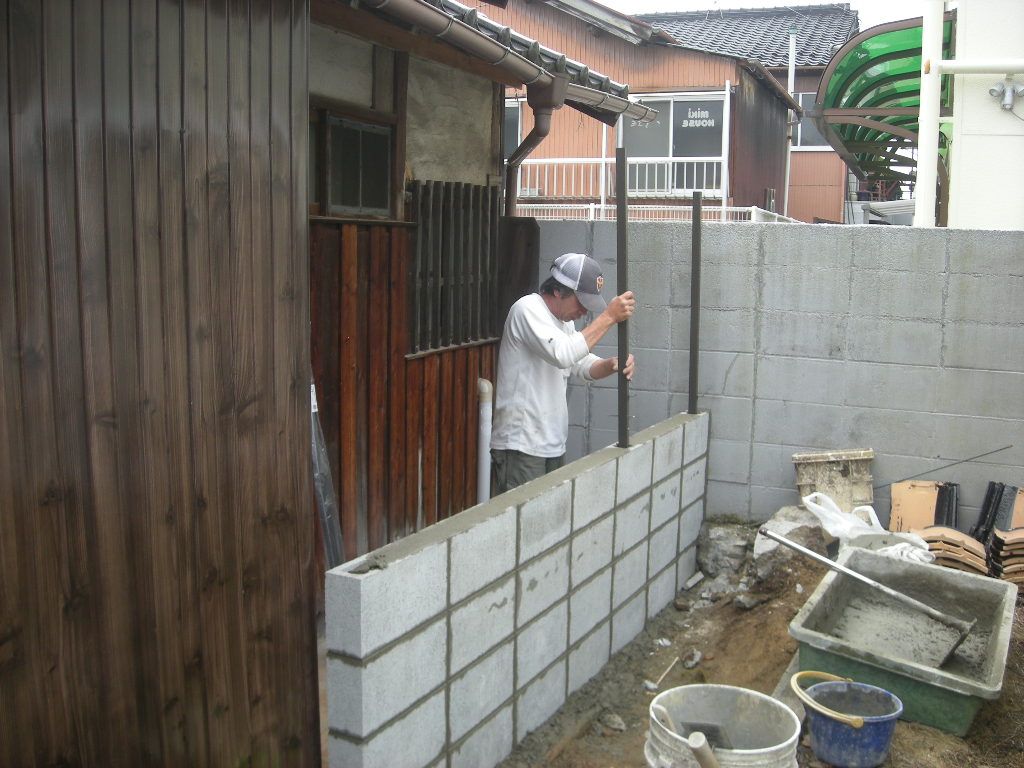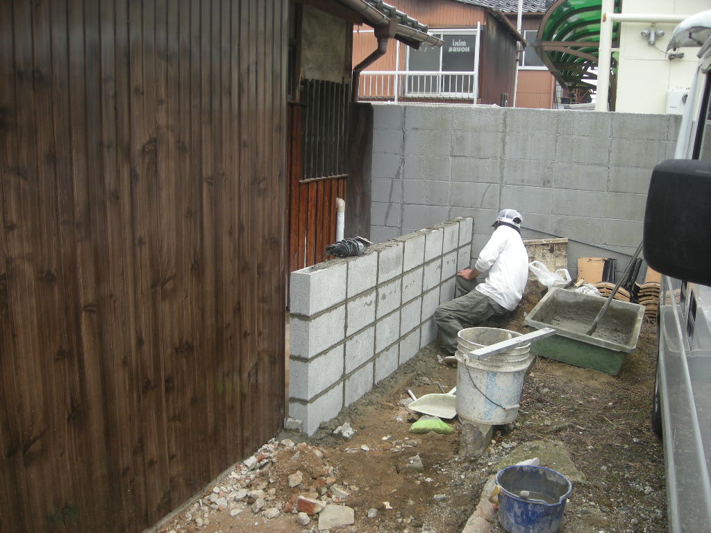 ◎前回のブログで紹介した小月の某邸の母屋を改修して、外の駐車場を拡張・整備する工事の、今回は左官さんの作業の様子を紹介します。